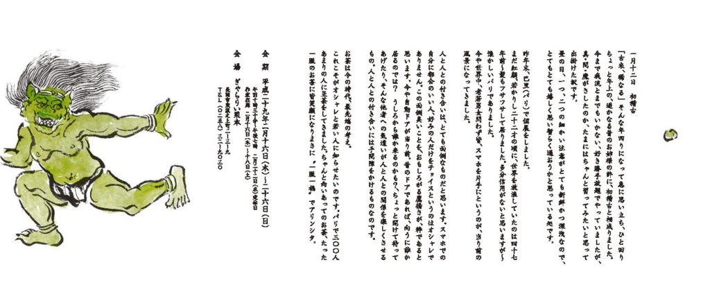 お茶は今の時代、最先端の考え。これこそがお洒落と若い人に知らせたいのです。巴里で三百人あまりの人に呈茶をしてきました。ちゃんと向かい合ってのお茶、たった一服のお茶に皆笑顔になりまさに「一服一福」でアリンシタ。