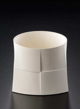 その中で白磁作品では、私自身の心象を最小限に抑え、例えば直線、もしくは
