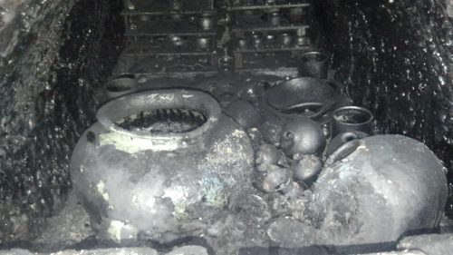 豪快で素朴な佇まいに、美しいエメラルドグリーンの自然釉。