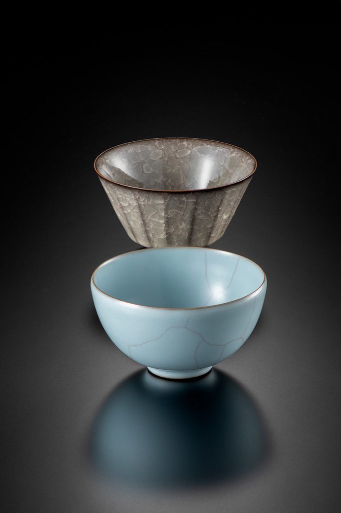 シックなグレーの色調に、万華鏡を覗いたような繊細な多重貫入が魅力の米色瓷。