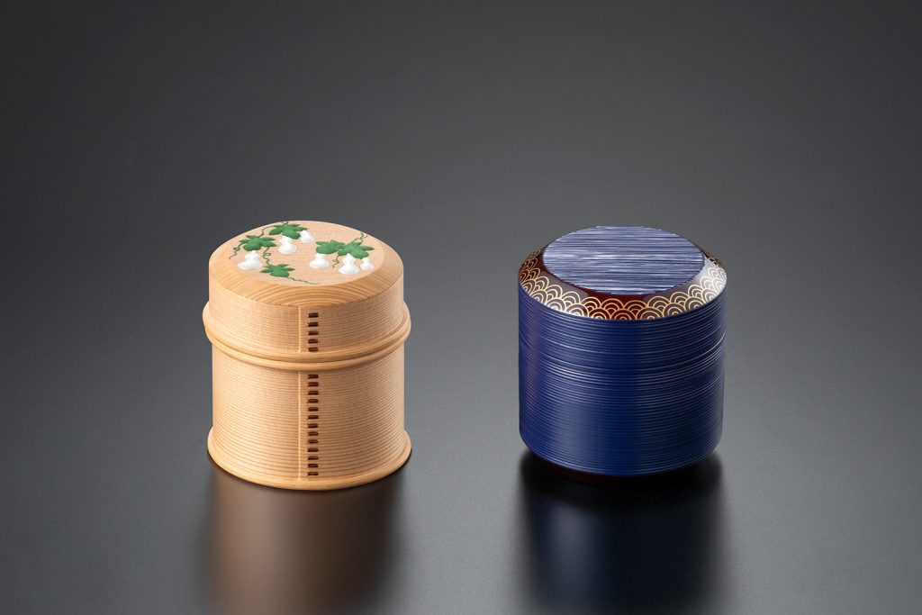 曲物制作に加え胡粉による置上や色絵付けを手掛ける