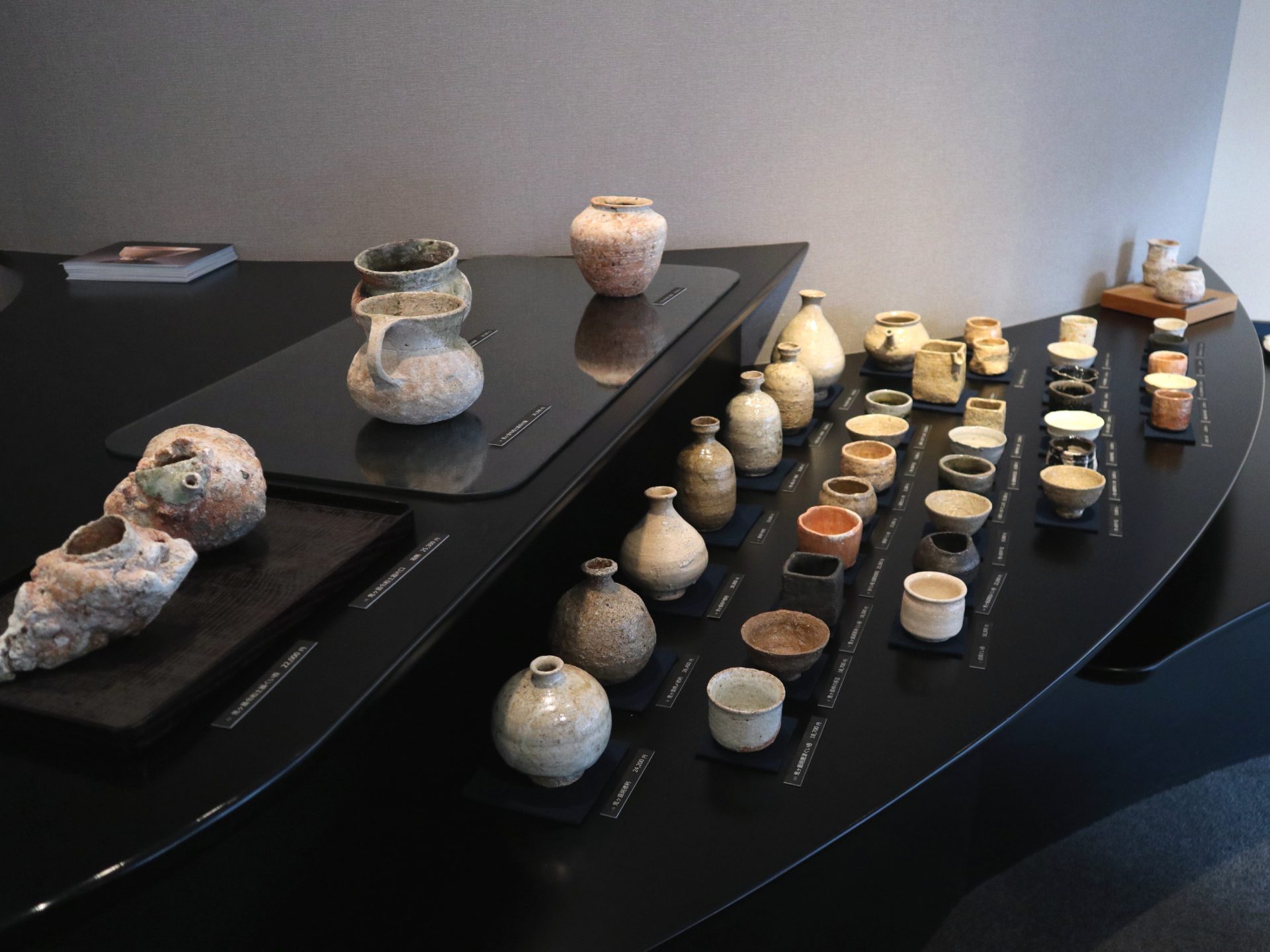 淡路島の原料のみで制作した「鬼ヶ島手」をはじめ、井戸や柿の蔕、楽、焼〆など