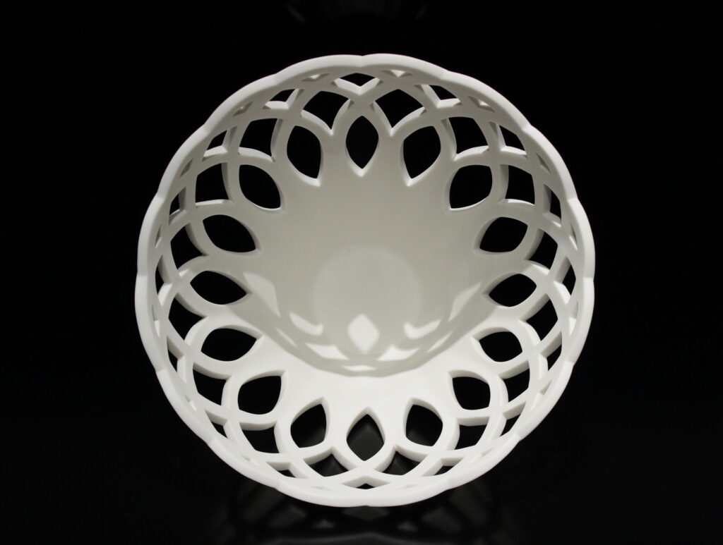 従来から取り組む、鋳型成型による繊細で美しいフォルムの白磁。