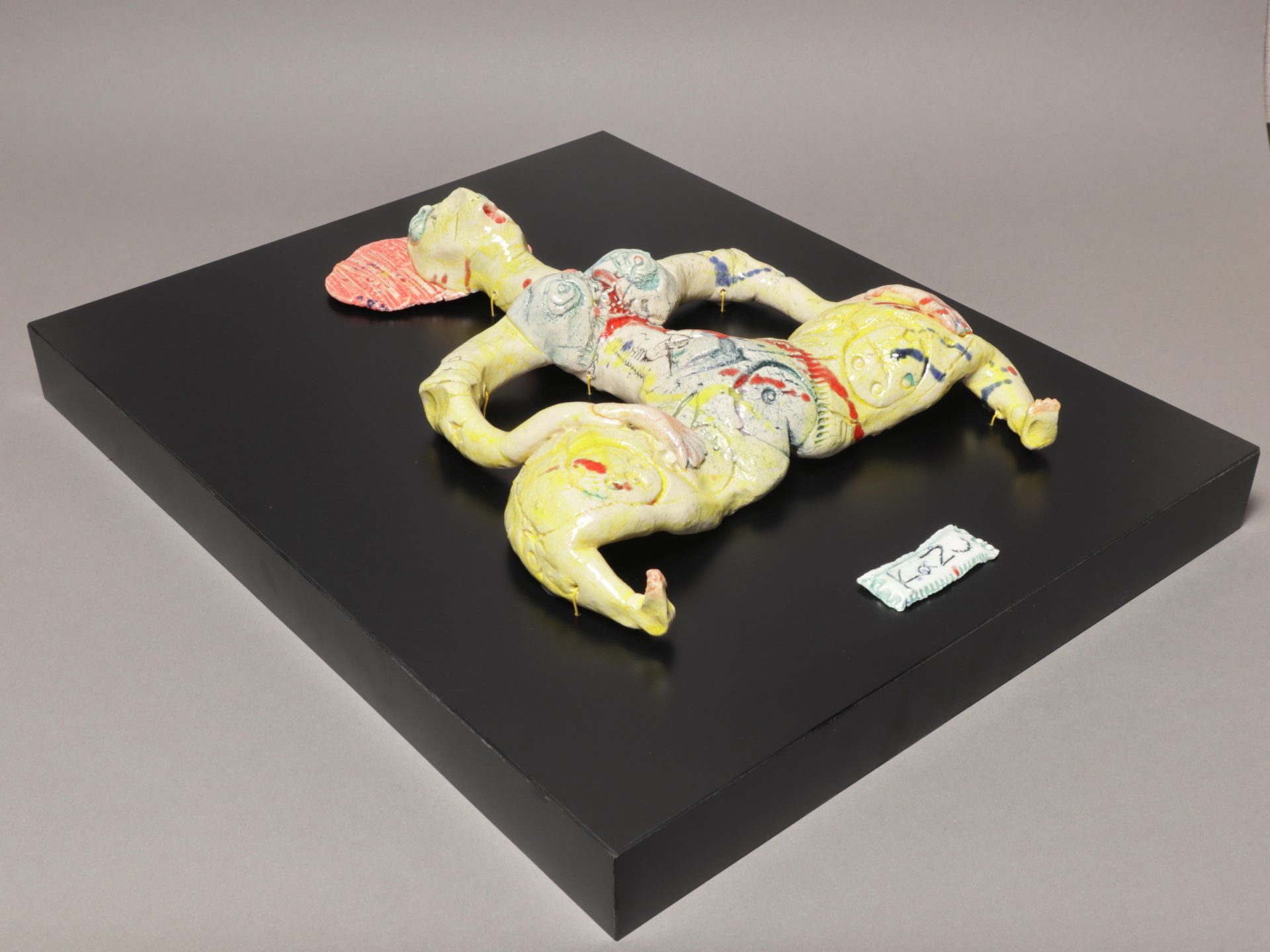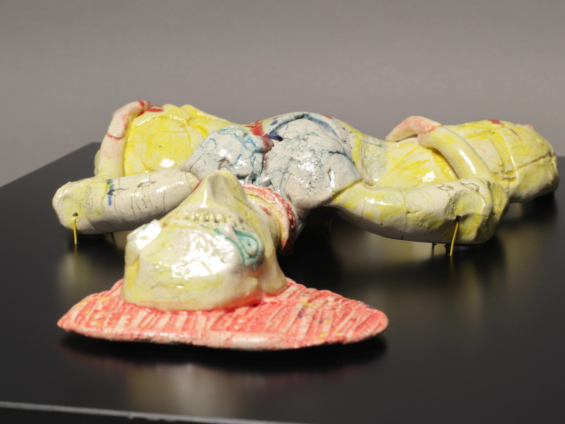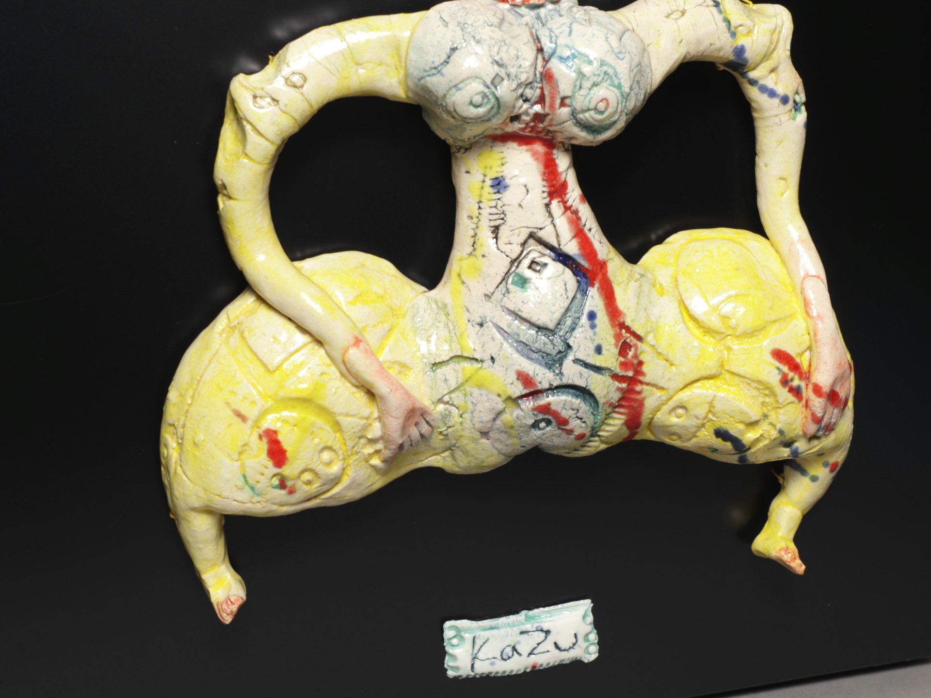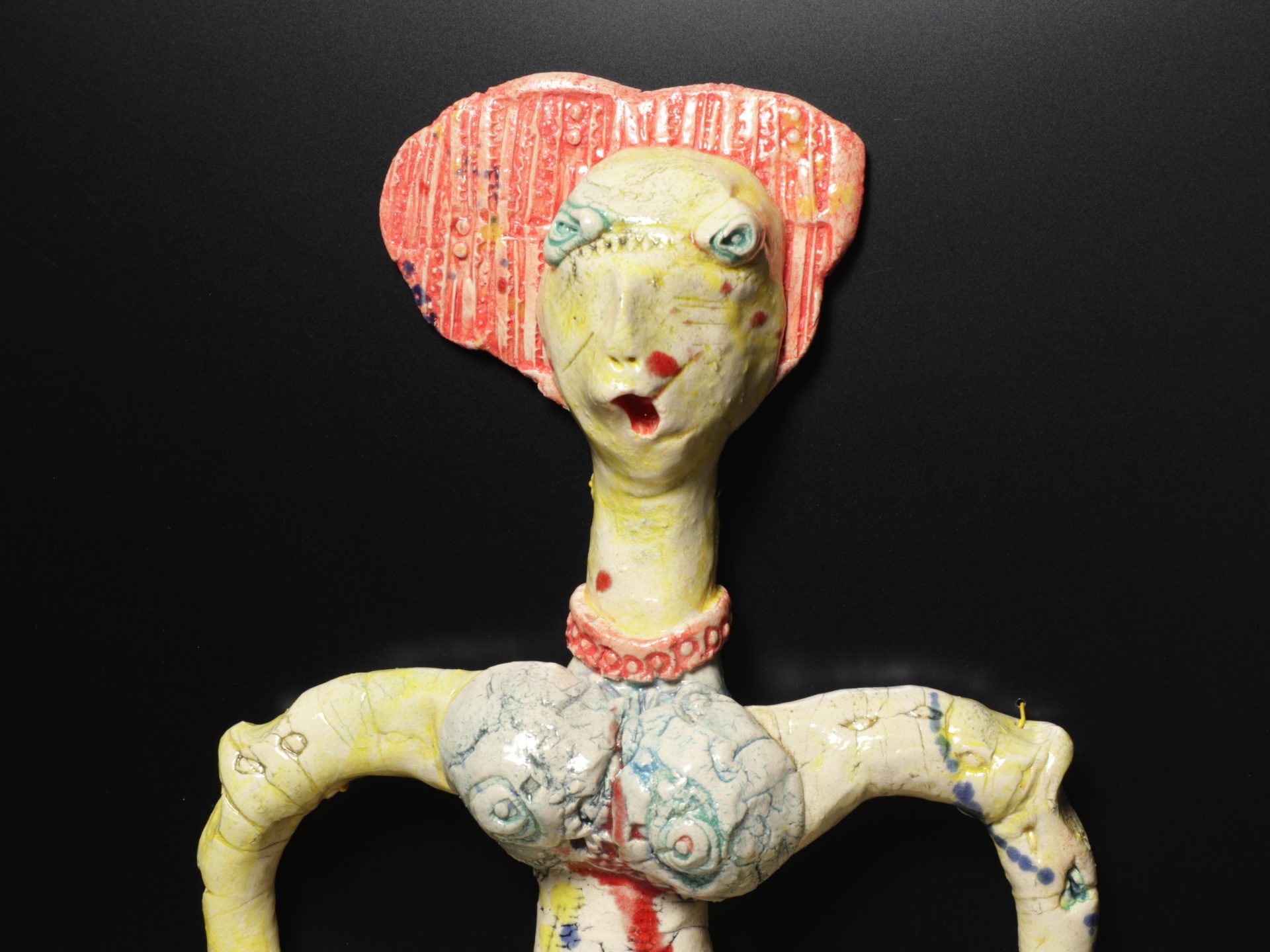 山田和先生の彩色土偶(壁面)です。若い頃から陶人形に惹かれていて、土偶を通して表現されたアートな世界観。死生観や生きること、新しい命の芽生えなどのテーマが根底にあります。特別価格でのご紹介です。