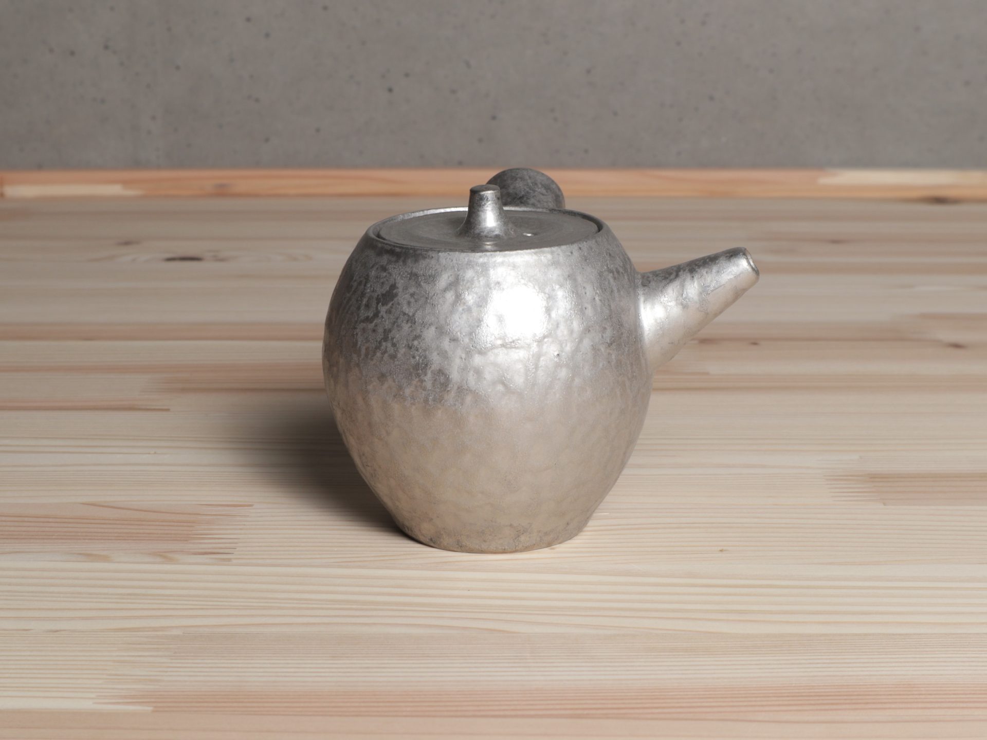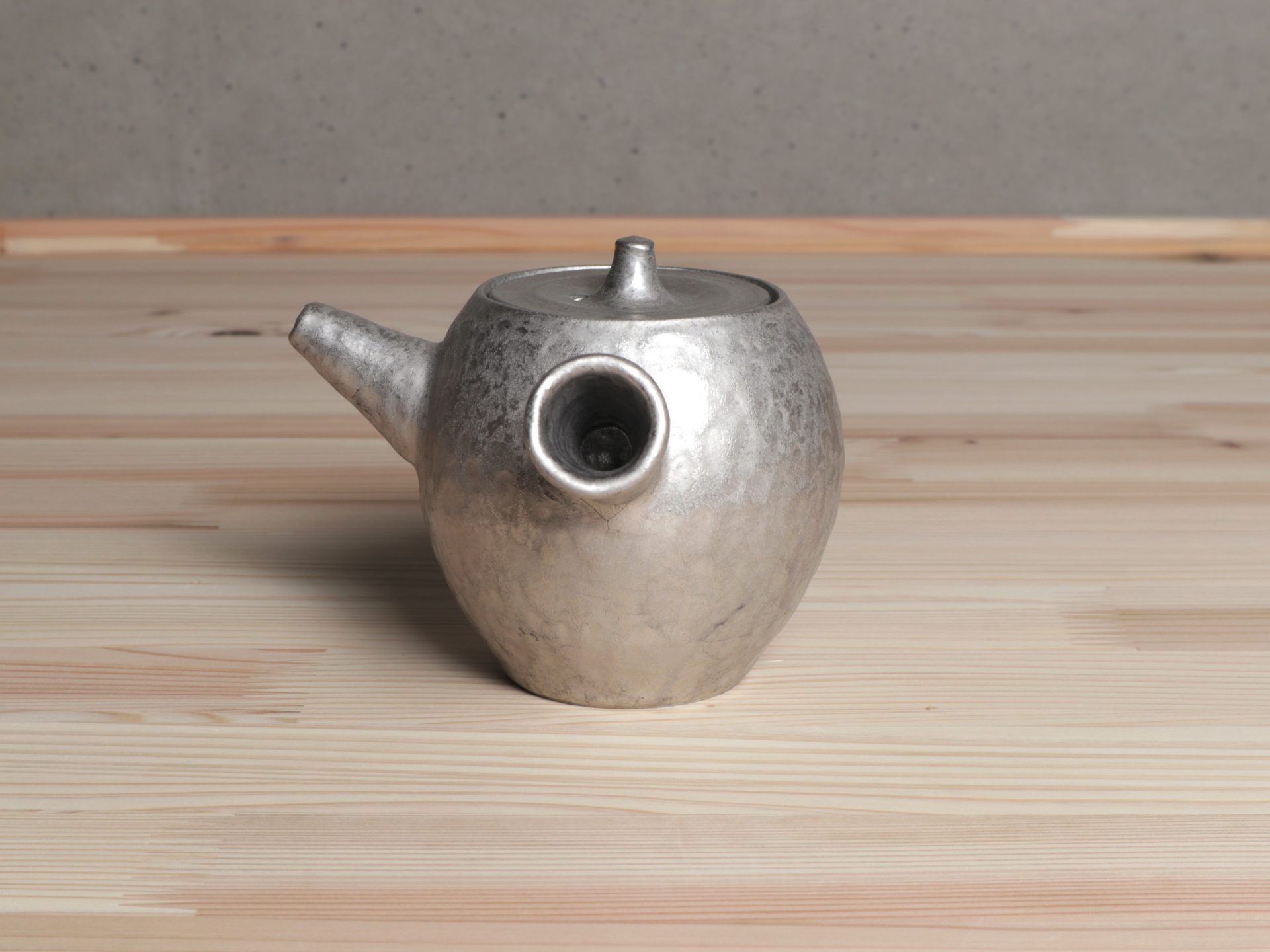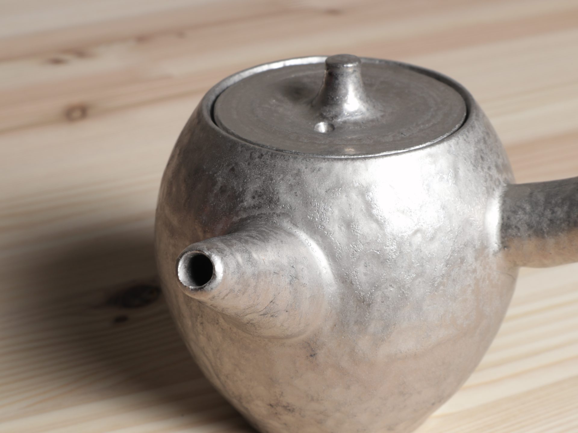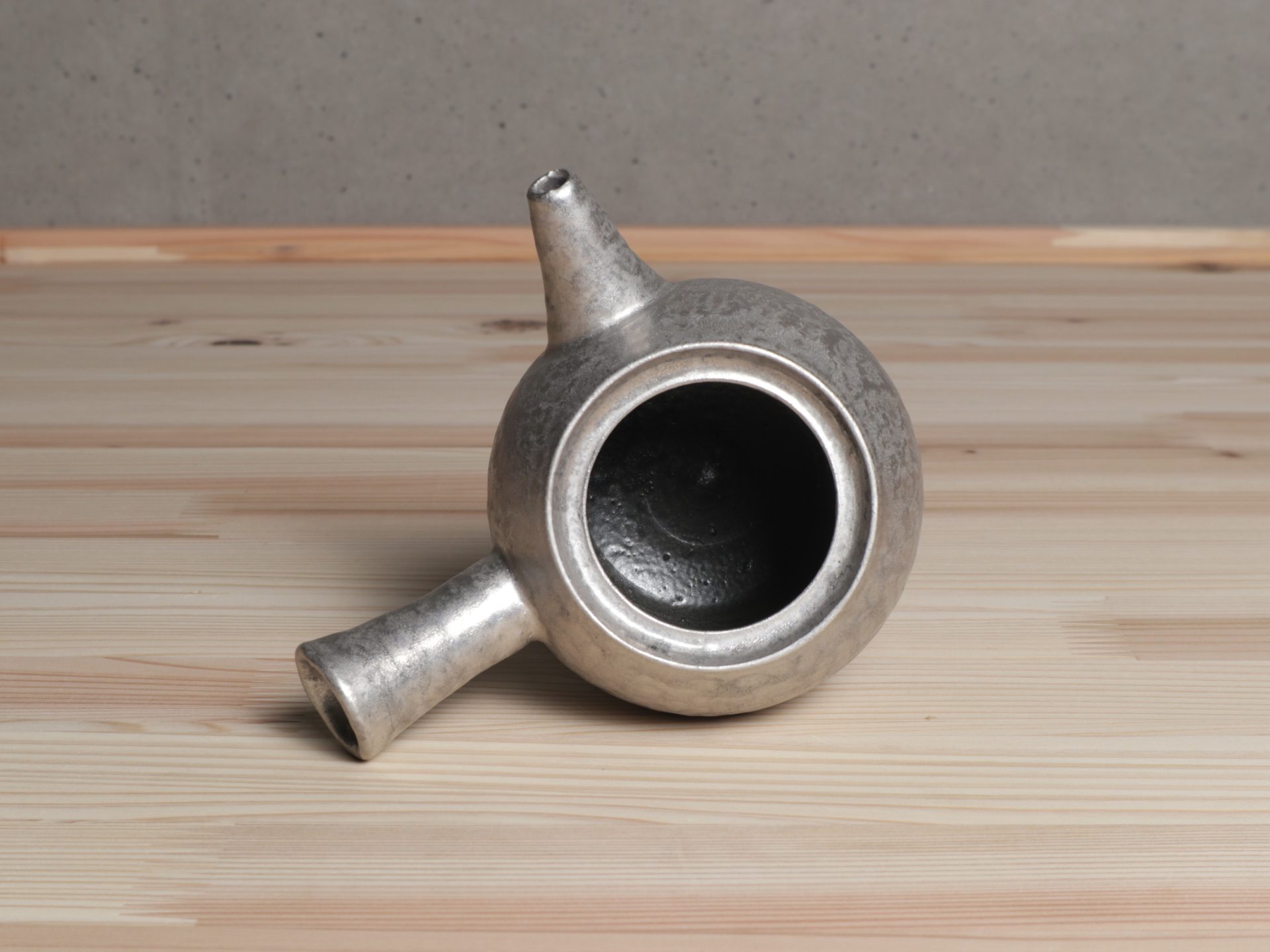 山田晶さんのプラチナ彩急須です。1980年代からプラチナを釉薬として使っていた草分け的存在の山田晶さん。柔らかい陶土のボディに、しっとりと淡い光沢のプラチナ彩。金属的でありながらも優しい佇まいです。