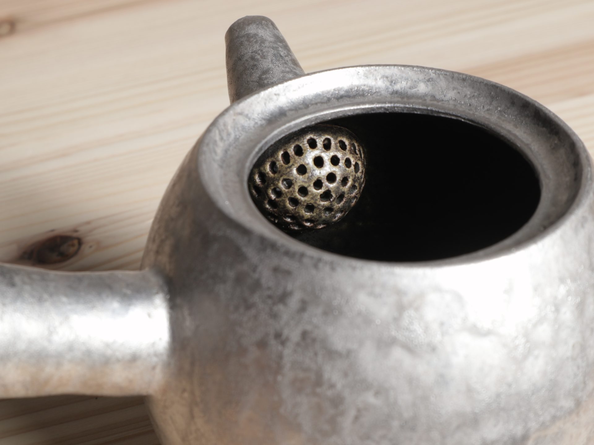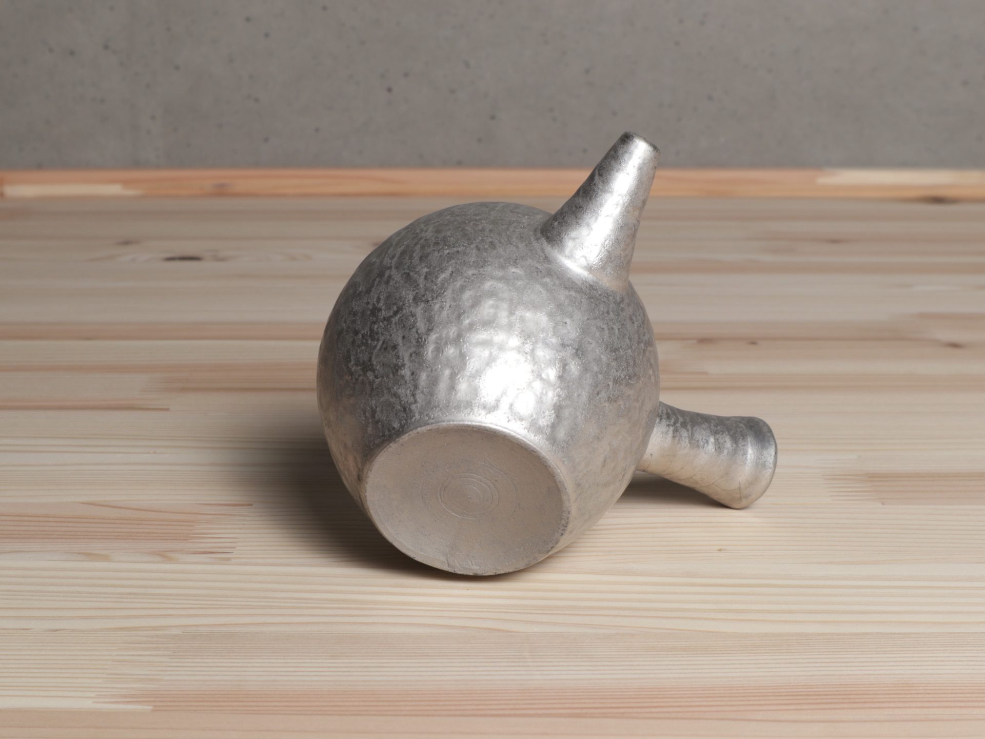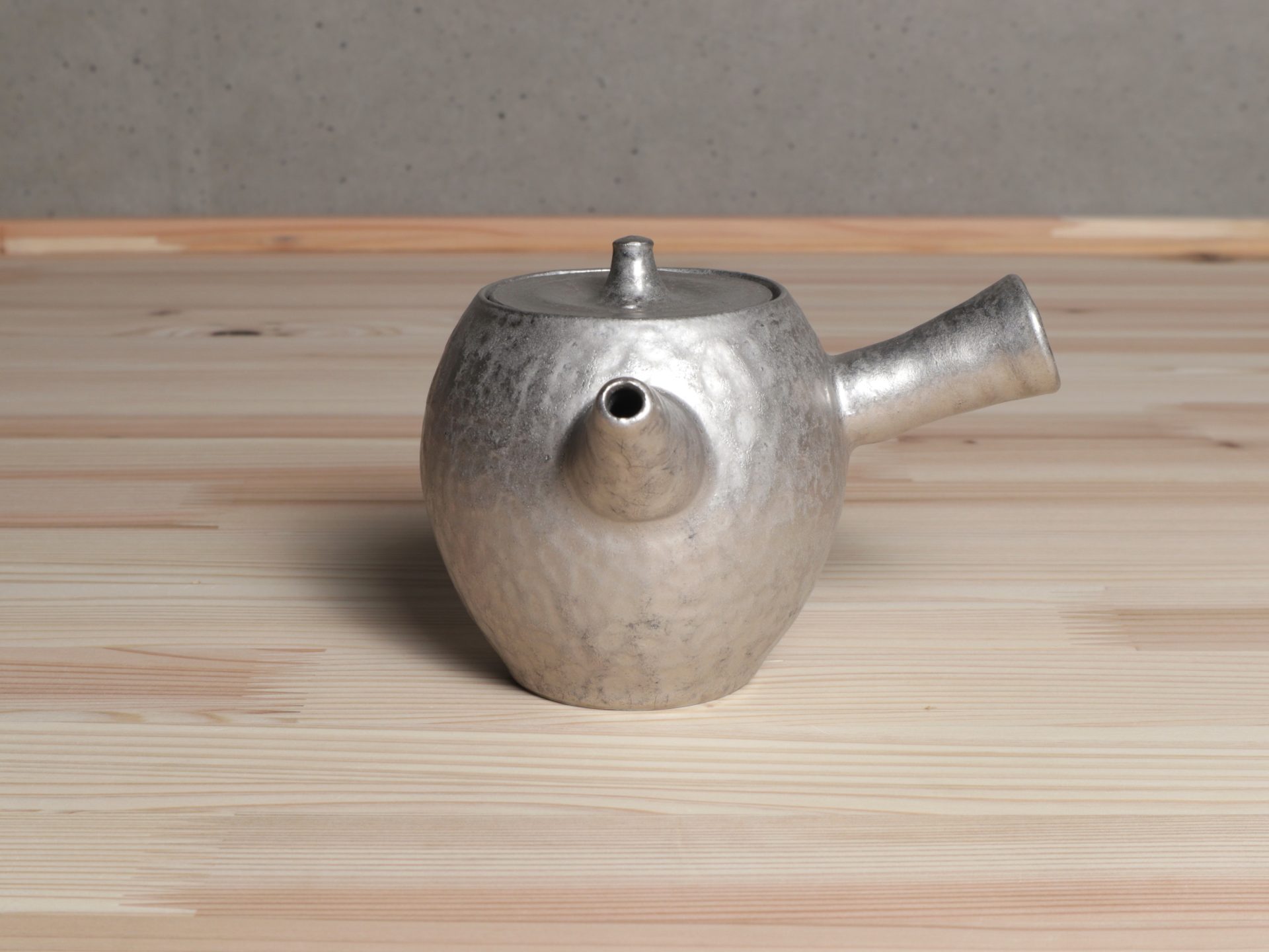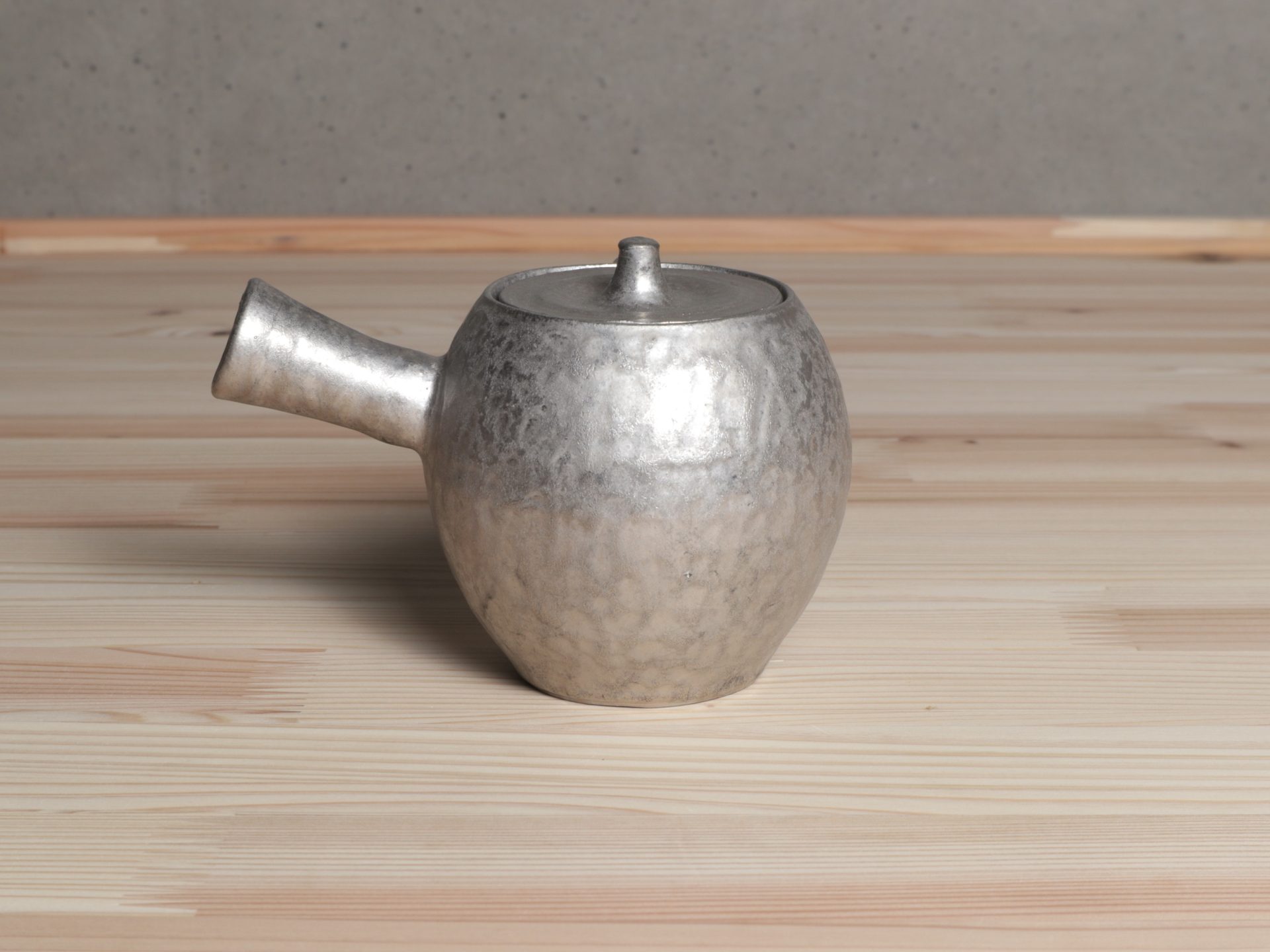 山田晶さんのプラチナ彩急須です。1980年代からプラチナを釉薬として使っていた草分け的存在の山田晶さん。柔らかい陶土のボディに、しっとりと淡い光沢のプラチナ彩。金属的でありながらも優しい佇まいです。