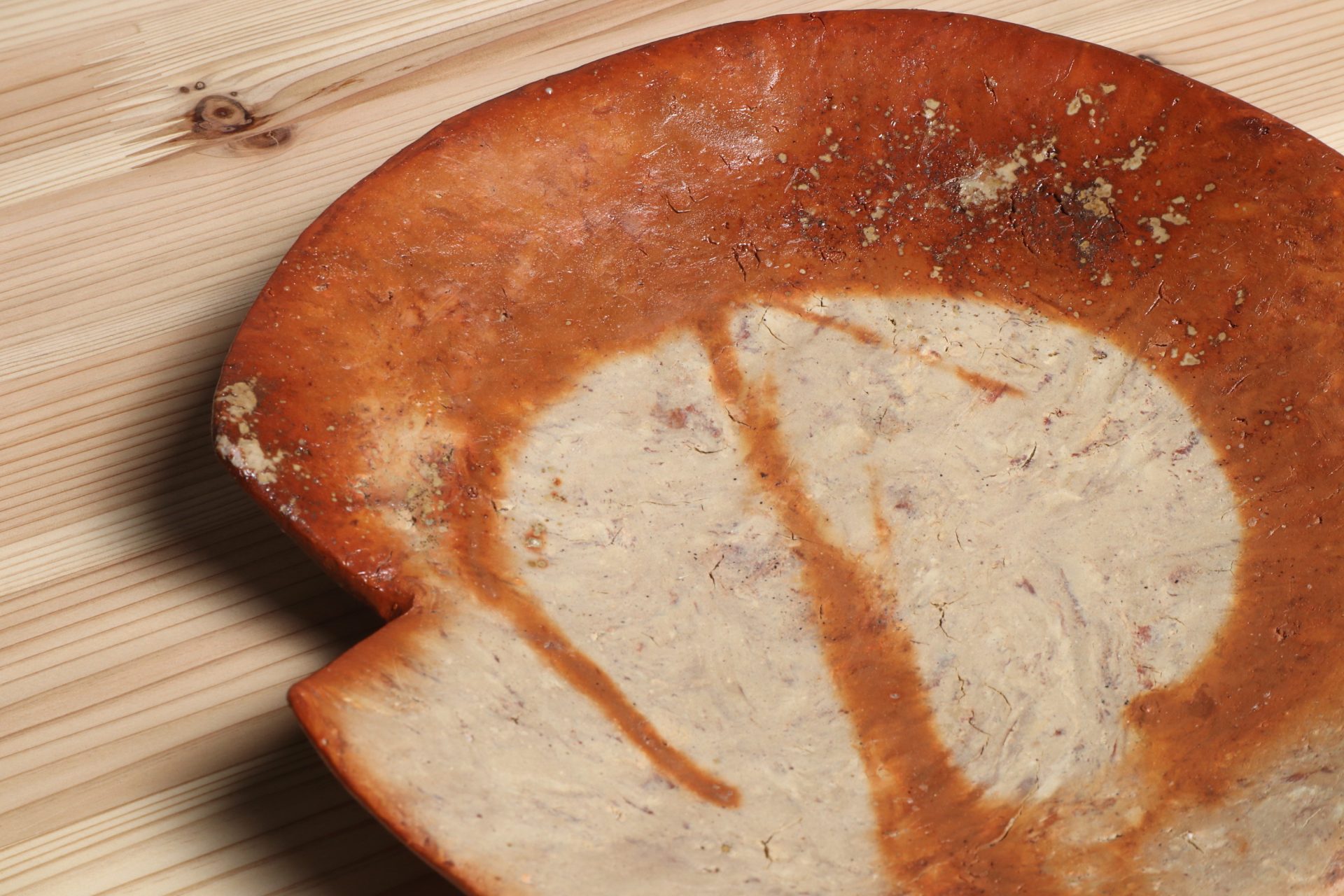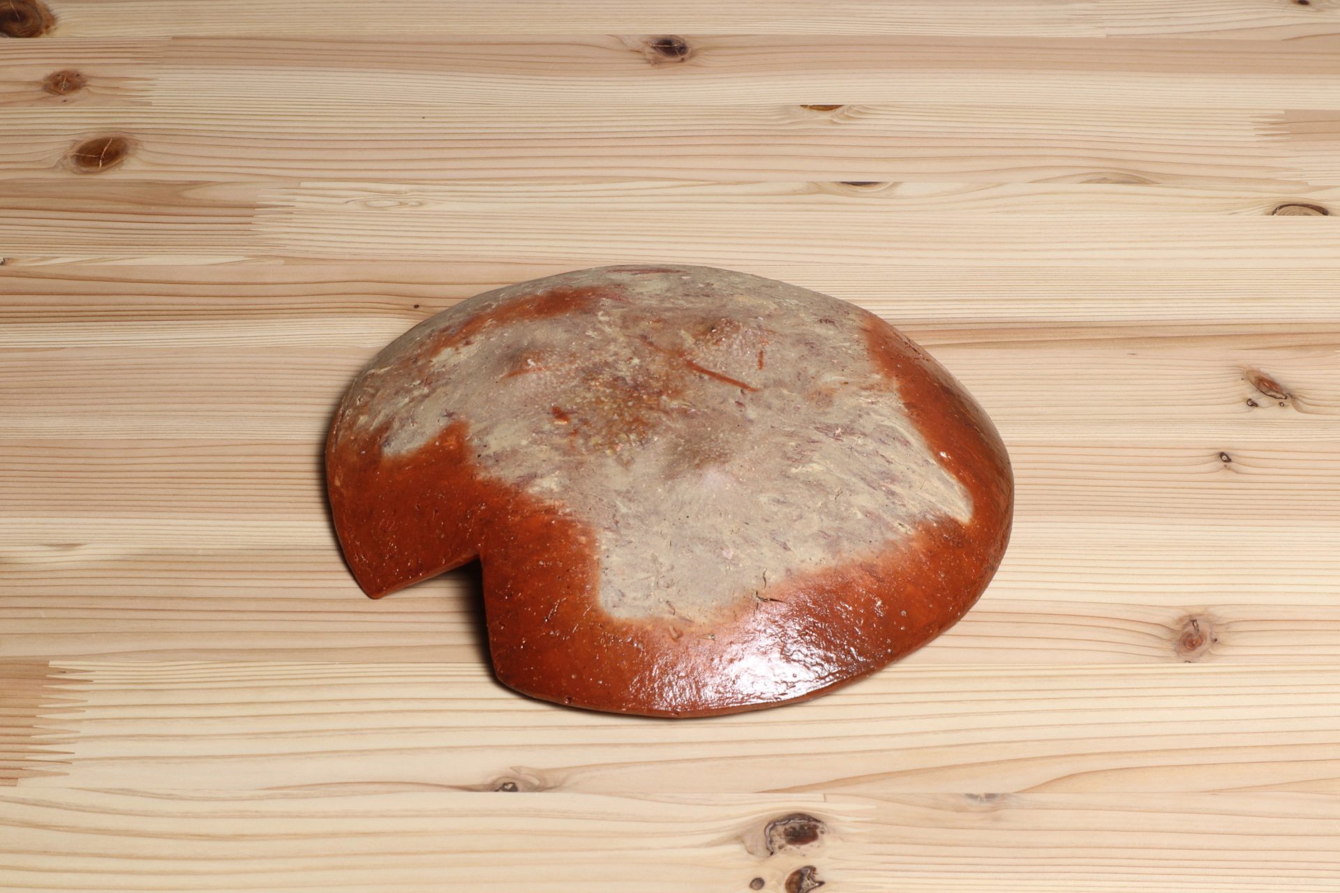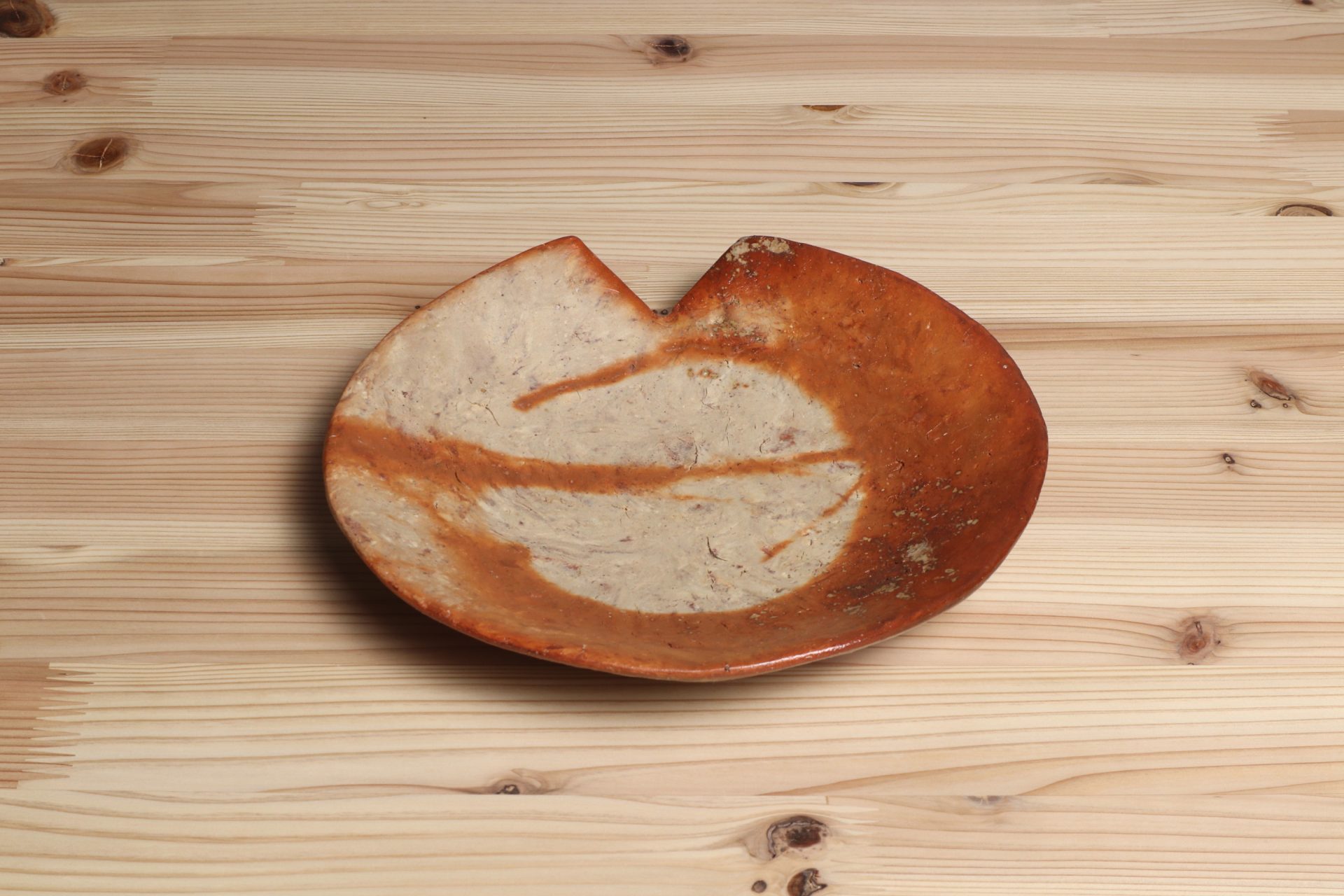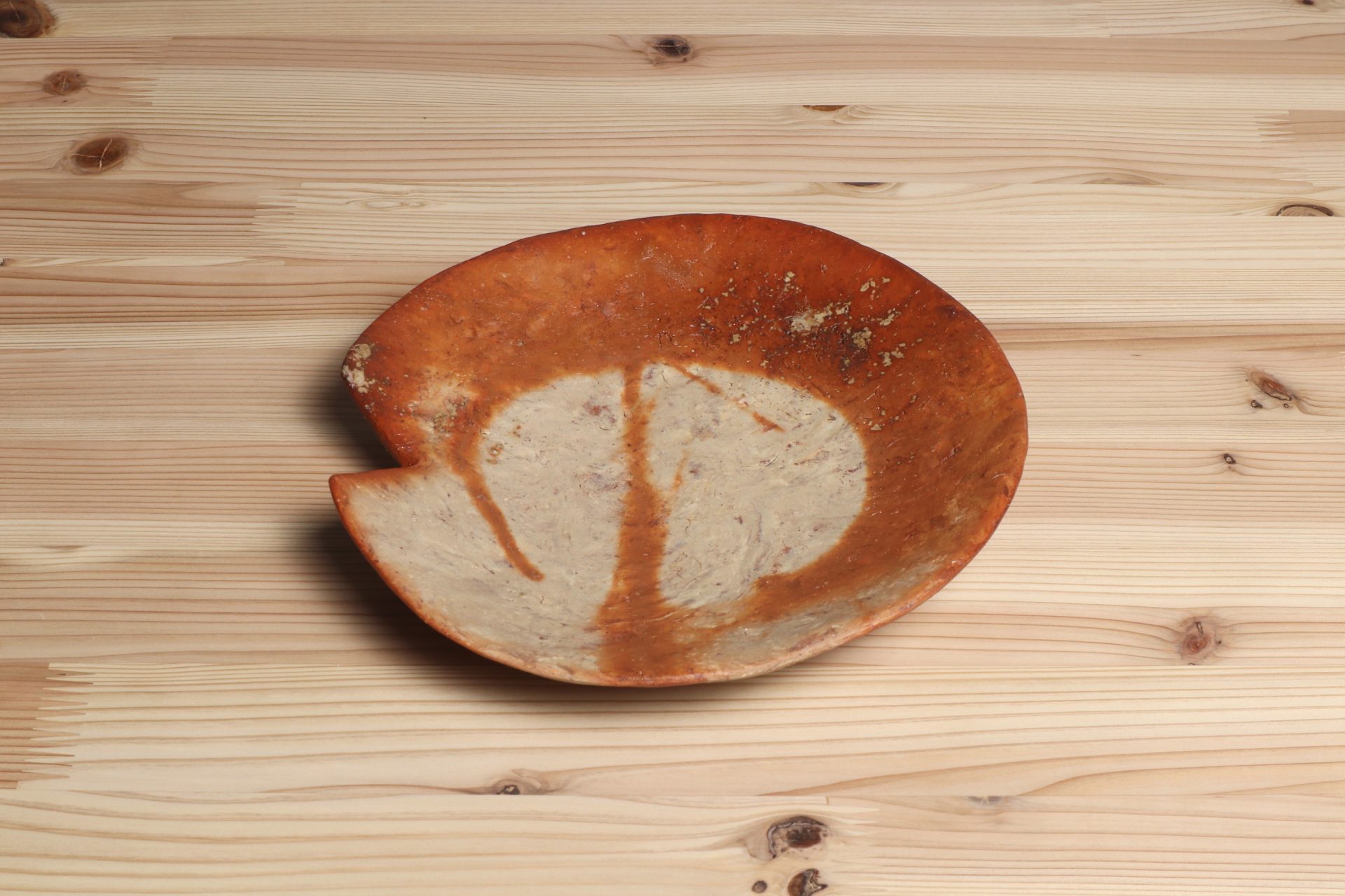 横山直樹さんの自然練込蓮葉皿です。備前土の自然な表情を活かすために、ほとんど精製しない特殊な土づくりをする自然練込技法。和紙のようなマーブル状の土肌が魅力です。