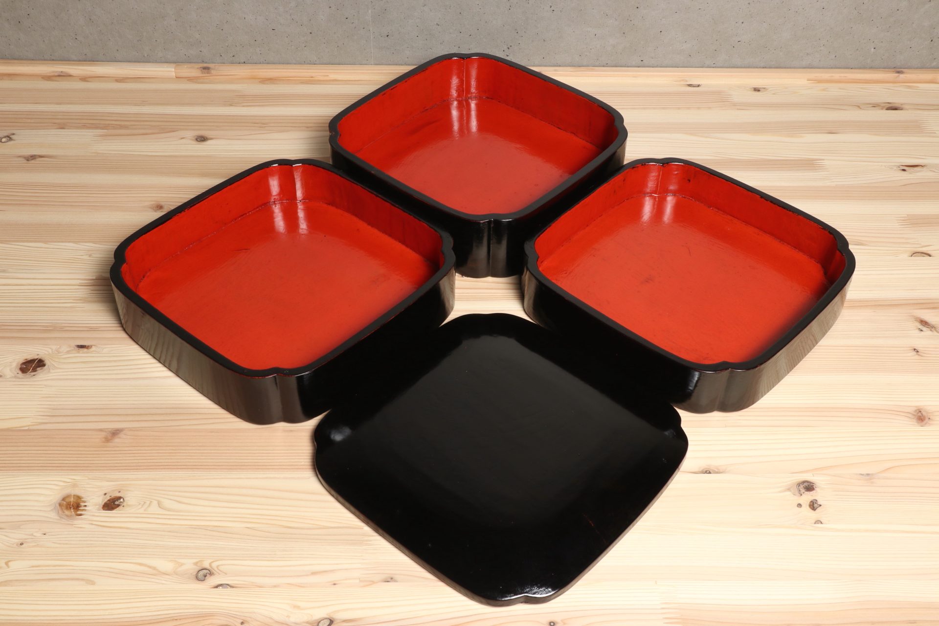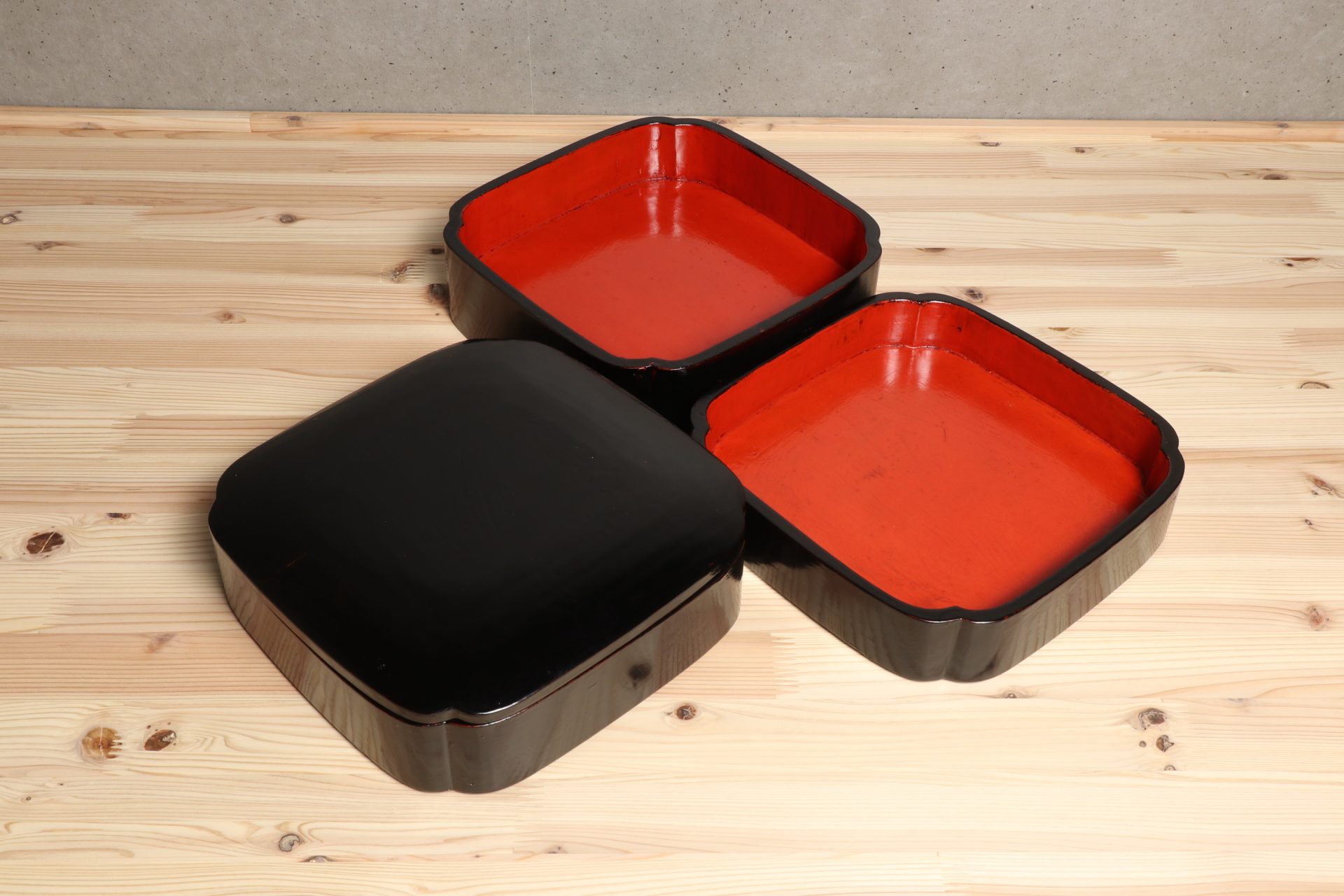| 商品名 | 呂色内朱三段重箱(箱無) / ROIRO AND RED LACQUERED THREE-TIERED BOX |