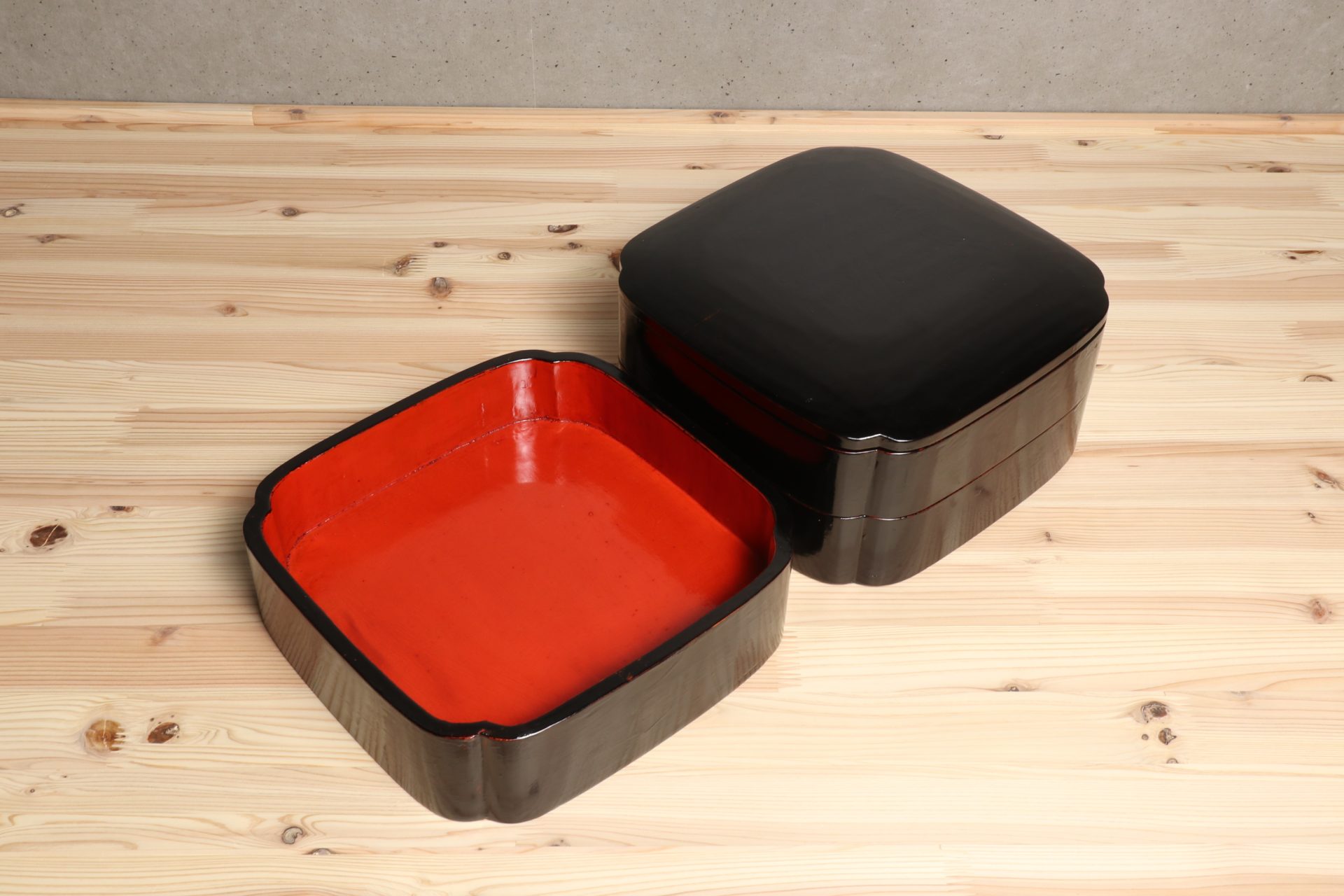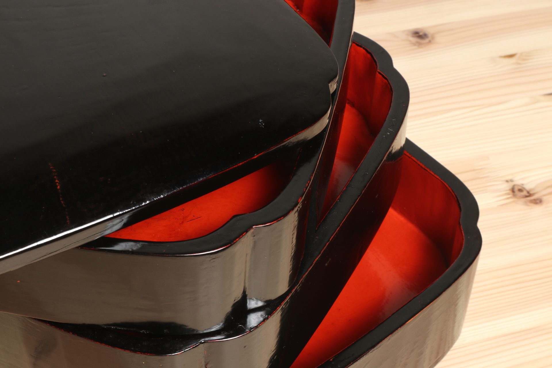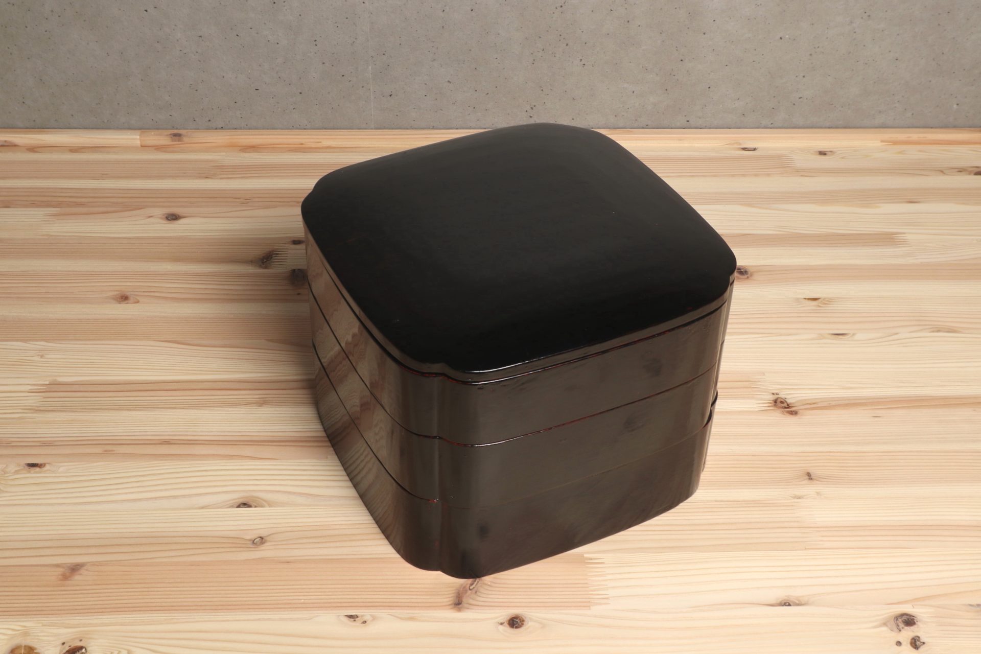 松崎融さんの呂色内朱三段重箱です。特別価格でのご紹介です。