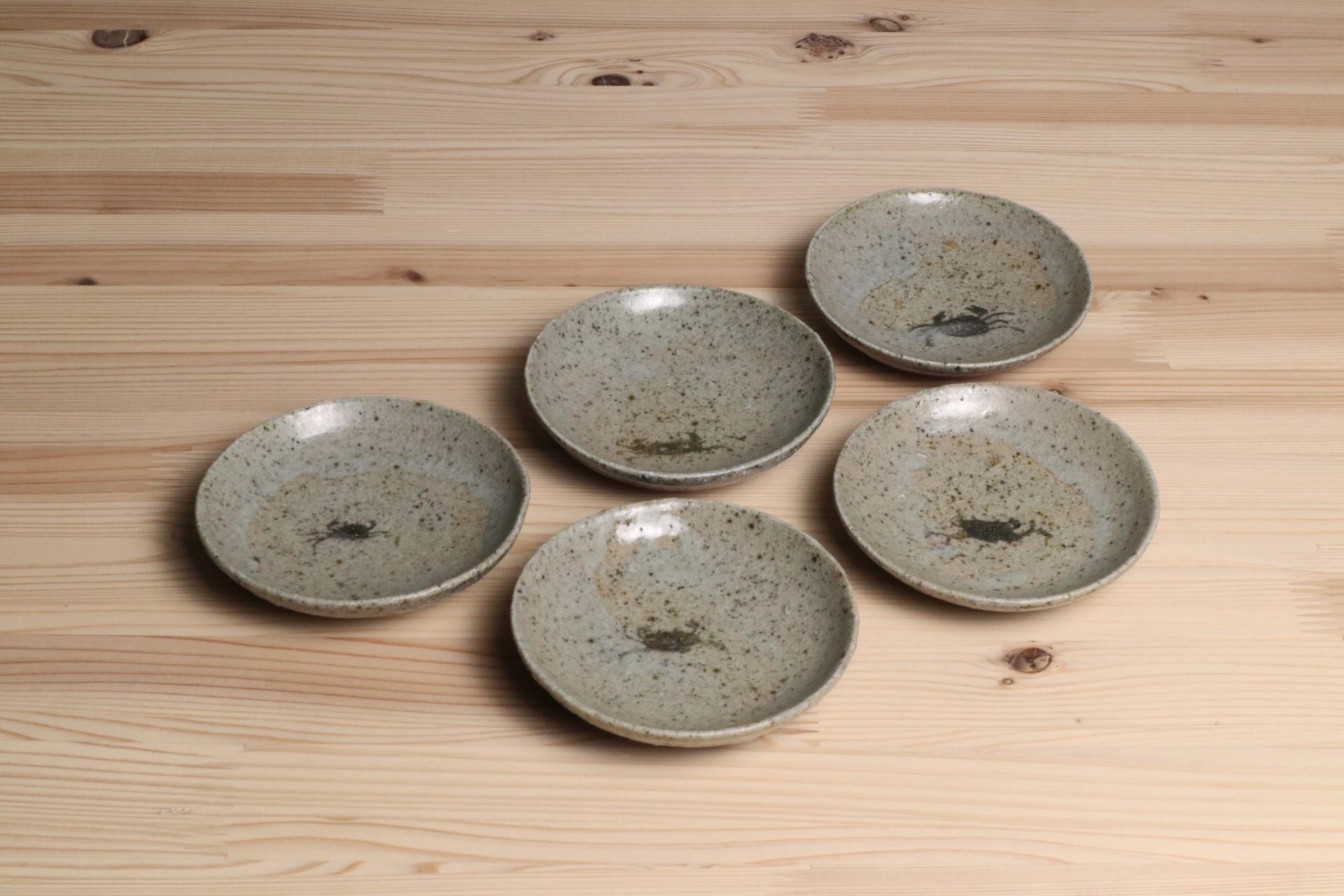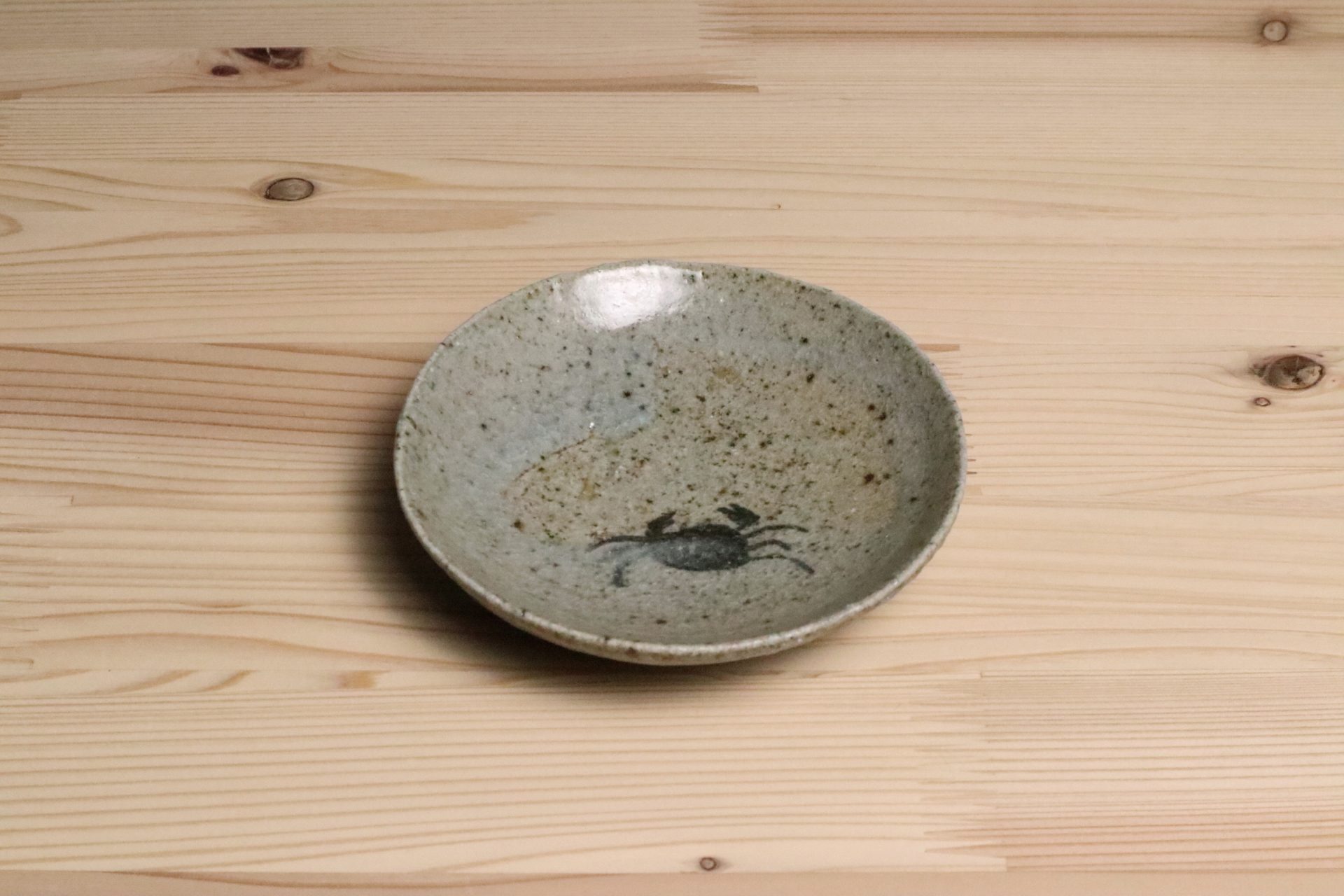 丸田雄さんの絵唐津蟹文小皿です。1客からお求めいただけます。