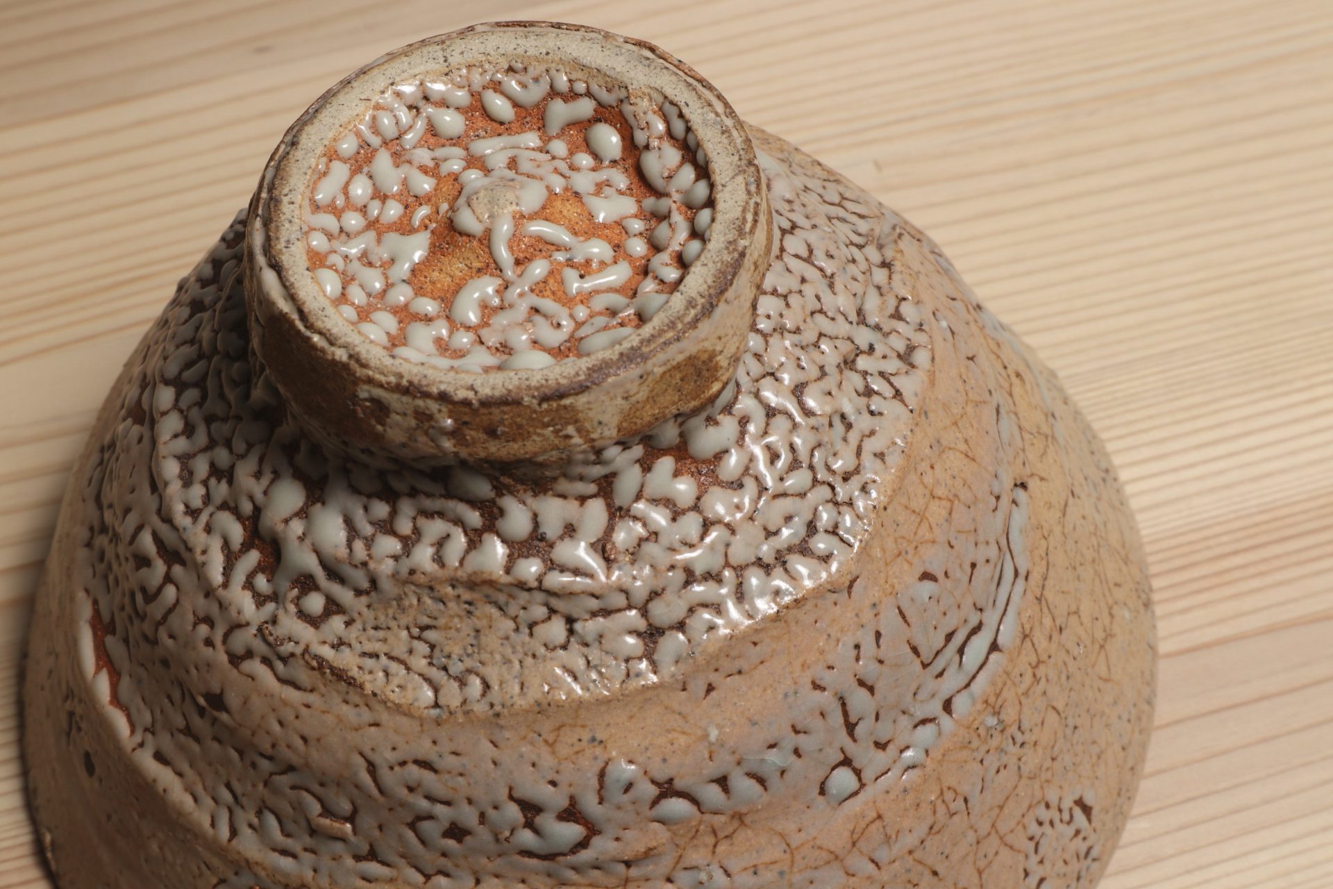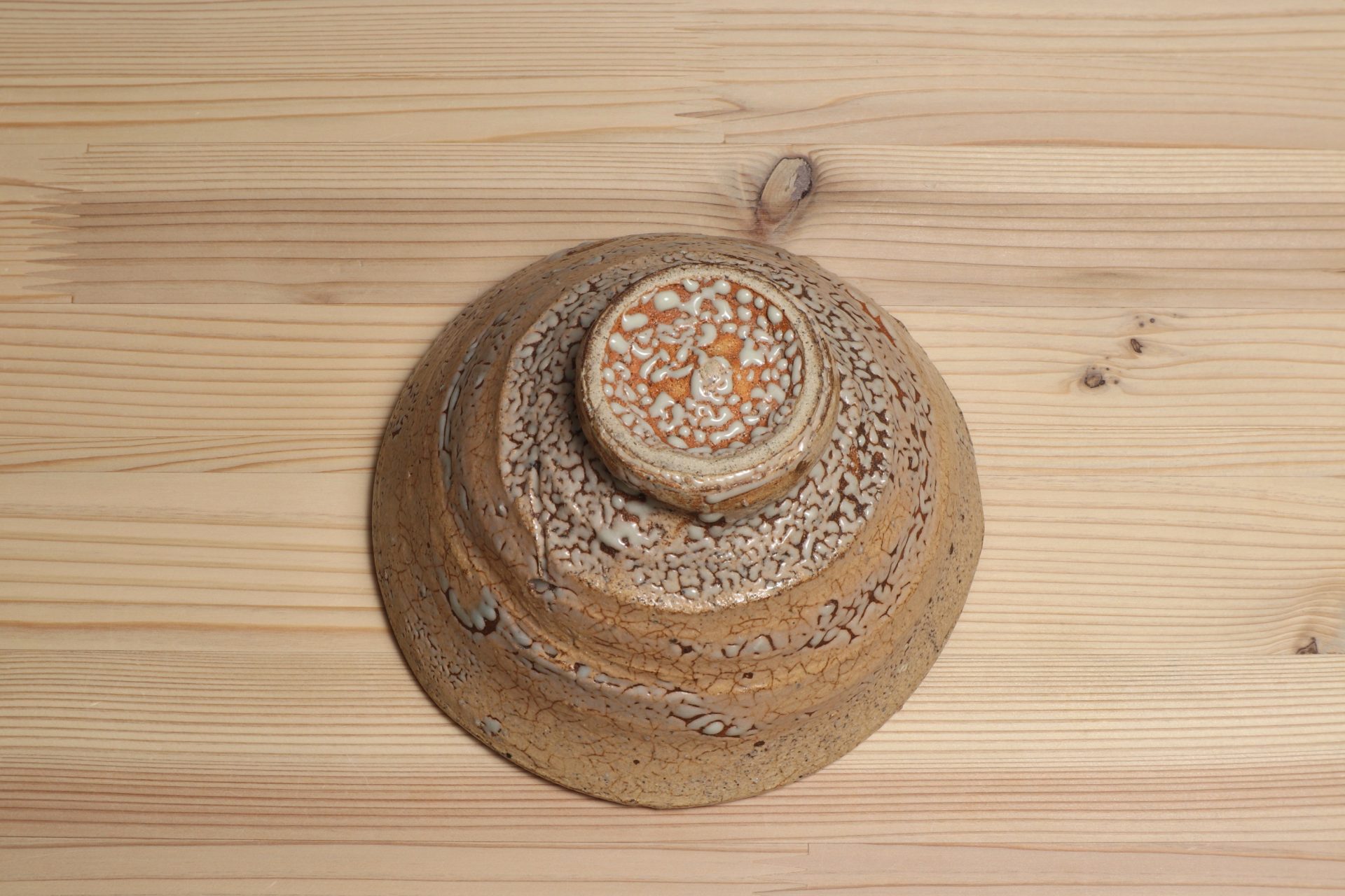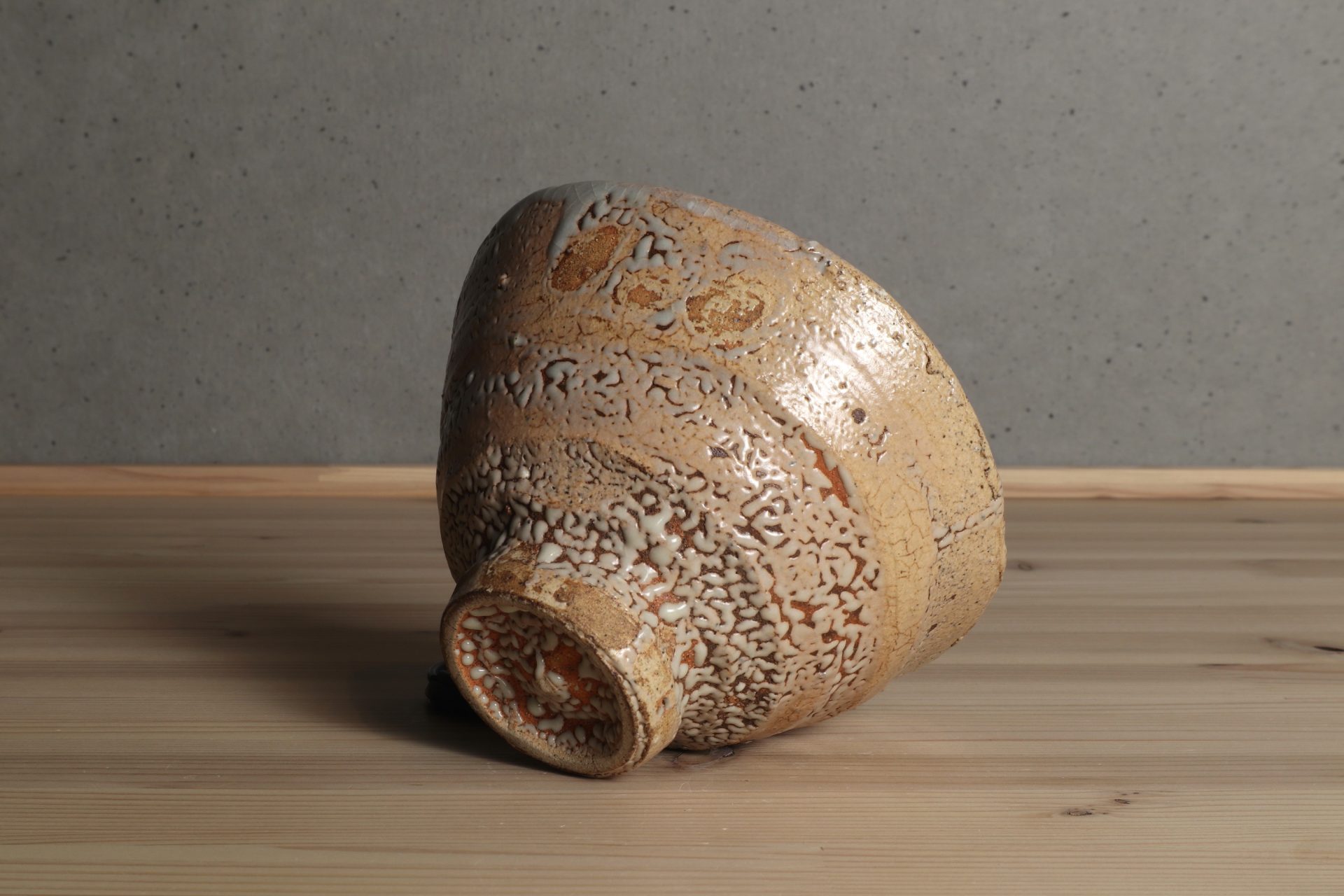 中村康平さんの井戸茶碗です。古陶から解釈した美のエッセンスを、工芸とアートが交錯した独自の概念で表現する「思考のうつわ」としての茶碗。「表現」を前提とした現代美術を手掛けてきた作家だからこその、特異なアプローチと茶碗観。「現代の古典」という独自のコンセプトに魅了されます。堂々たる井戸形の立ち姿に、詩情ある枯れた風情の釉調。豪胆な竹の節高台に梅花皮も魅力の茶碗です。