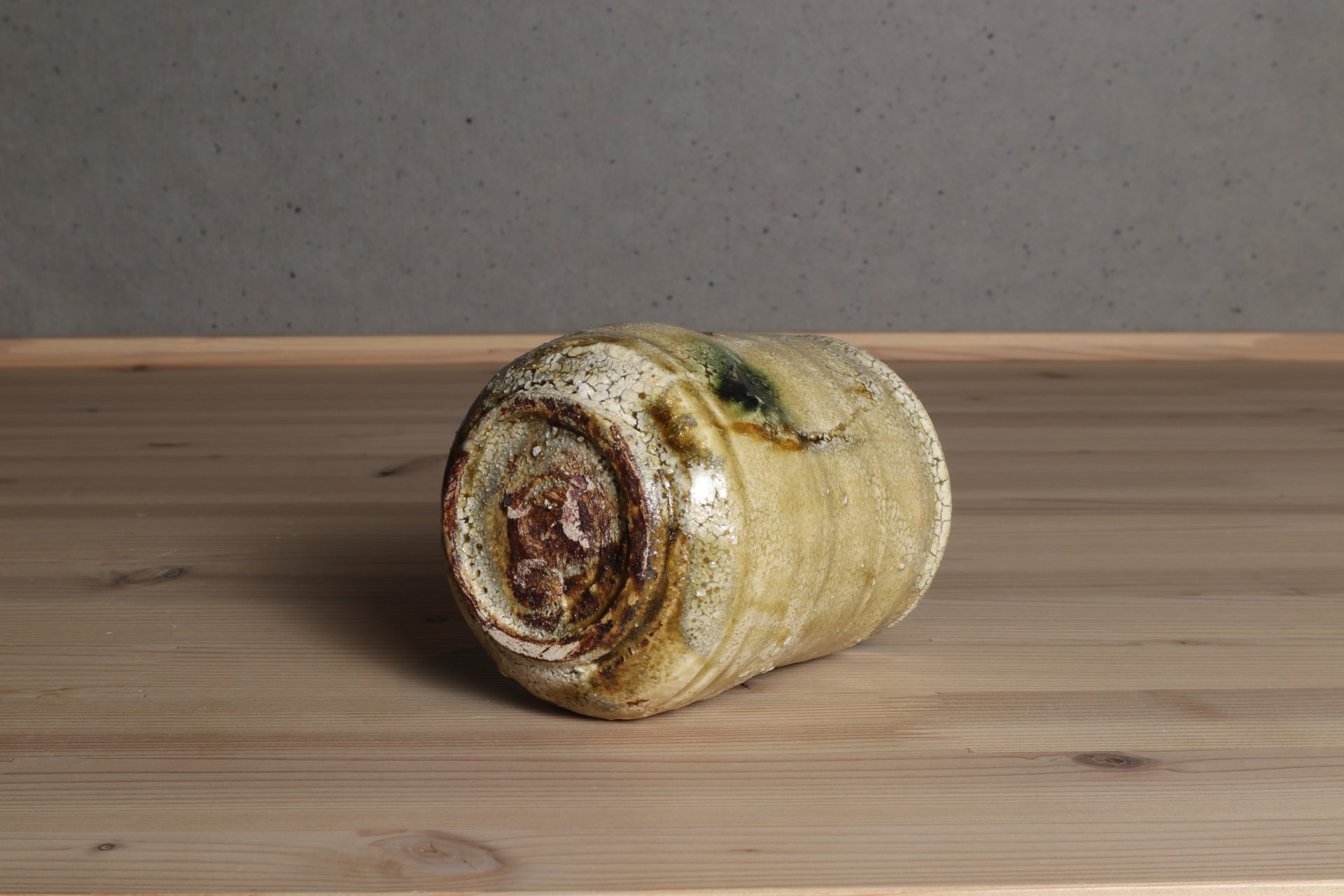 後藤秀樹さんの黄瀬戸湯呑です。腰部を張り出した飄々とした愛らしいフォルム。化粧土を塗った上から黄瀬戸釉を掛けることで、鮫肌のような趣向ある風合い。しっとりと艶やかな釉肌に、深緑の胆礬が味わい表情となっています。