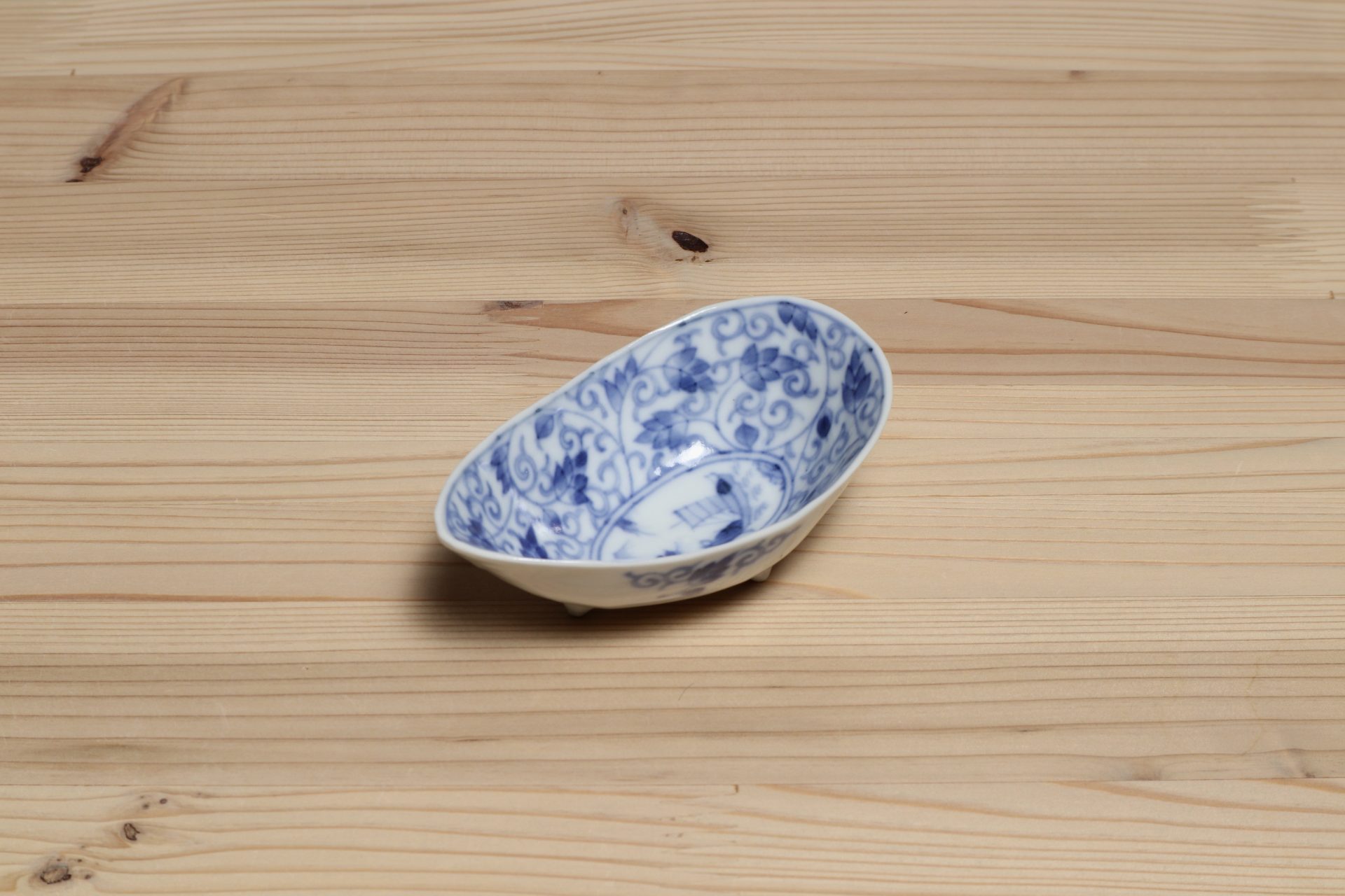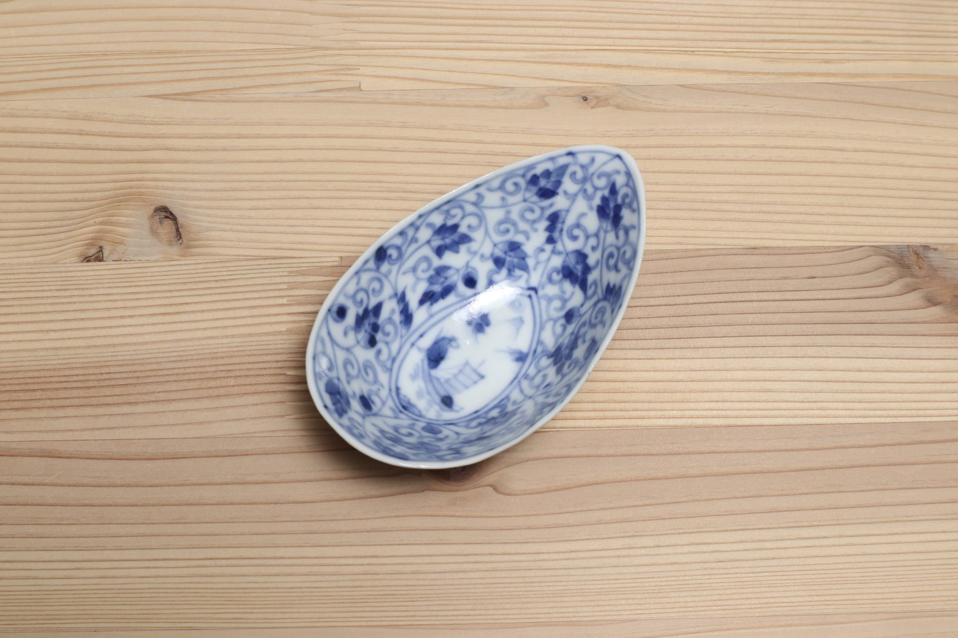 商品名 染付花唐草紋雫形豆鉢(箱無)/ SOMETSUKE FLOWER-KARAKUSA DROPLET SHAPE SMALL BOWL