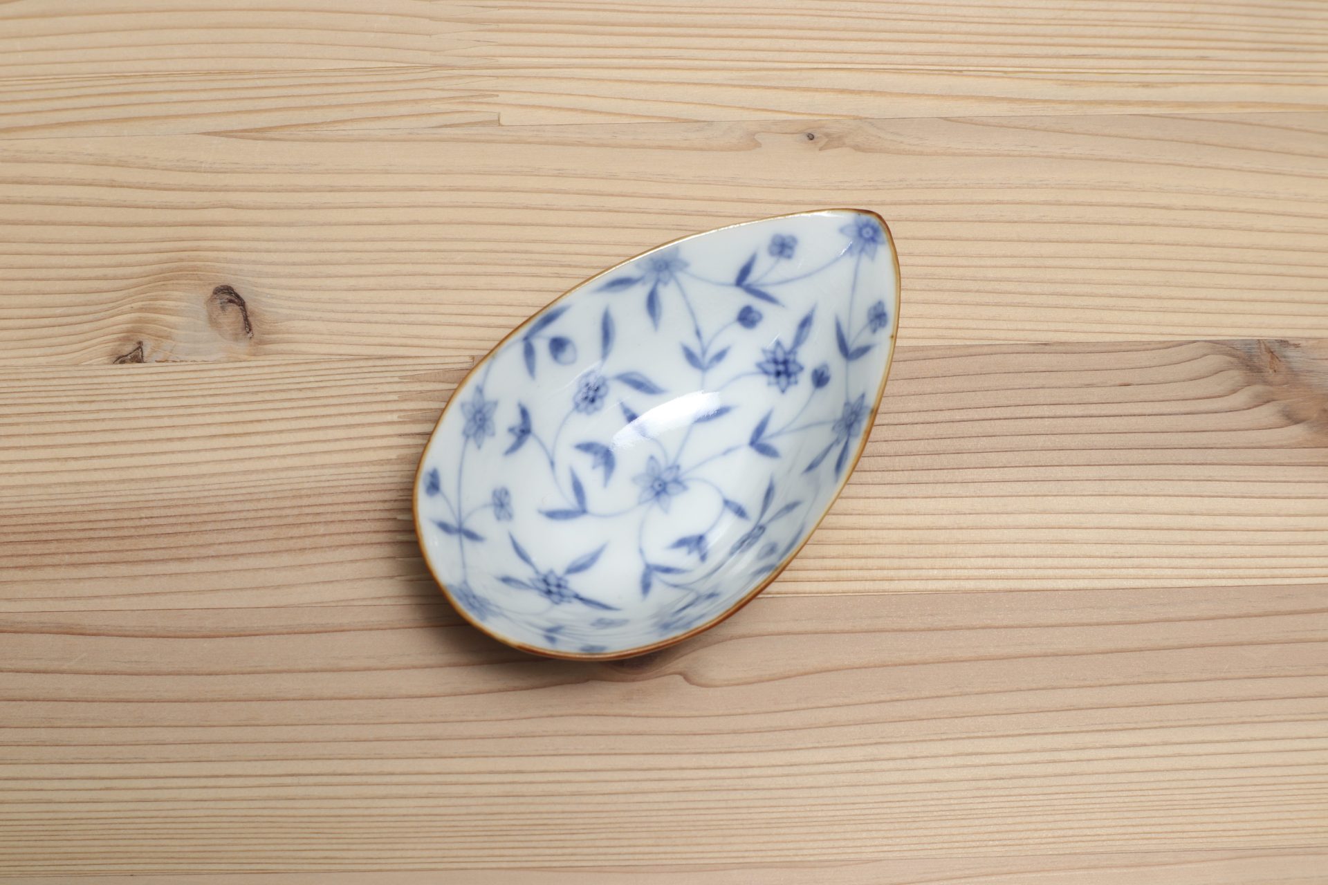 | 商品名 | 染付更紗紋雫形豆鉢(箱無)/ SOMETSUKE SARASAMON DROPLET SHAPE SMALL BOWL |