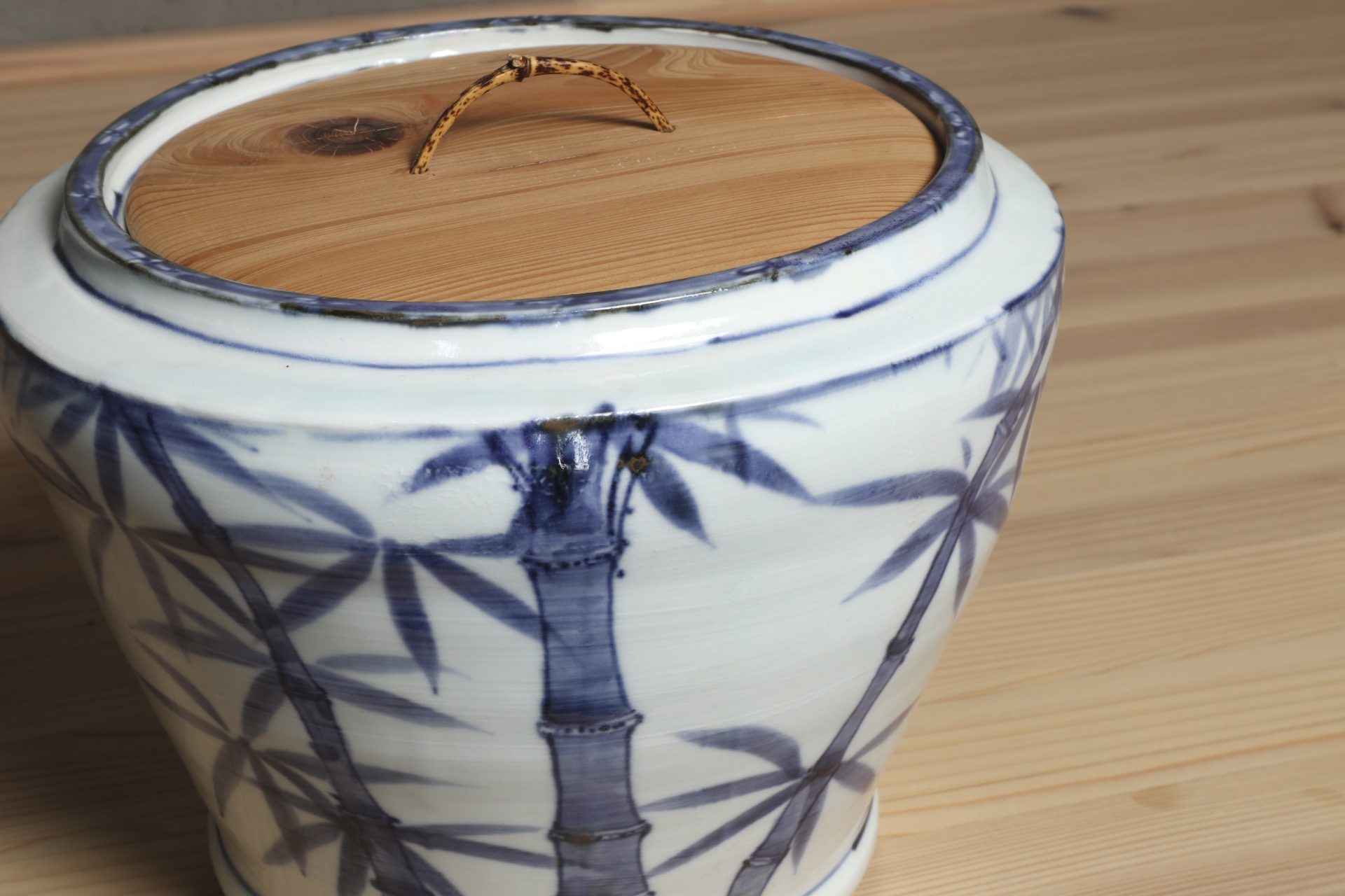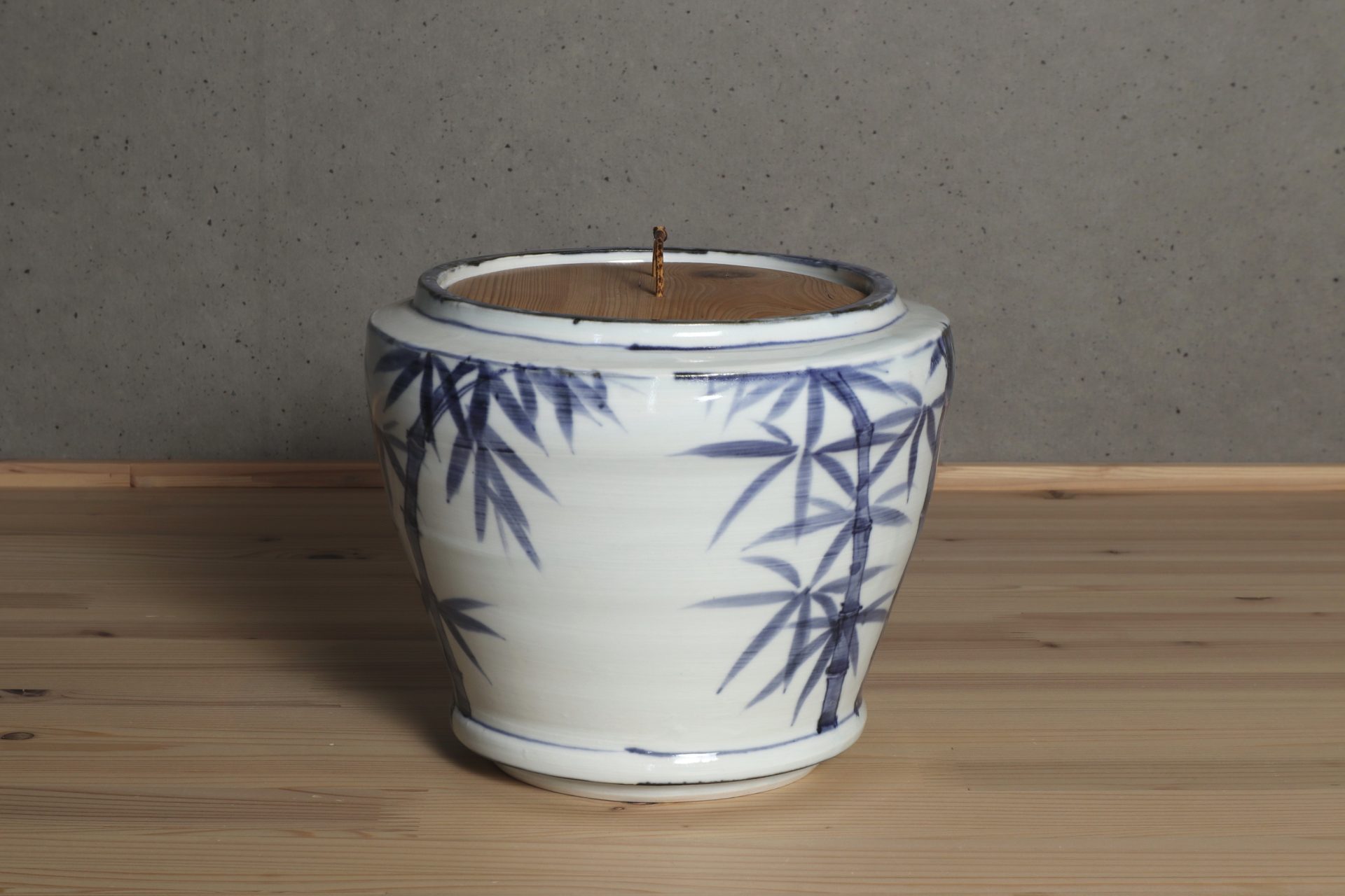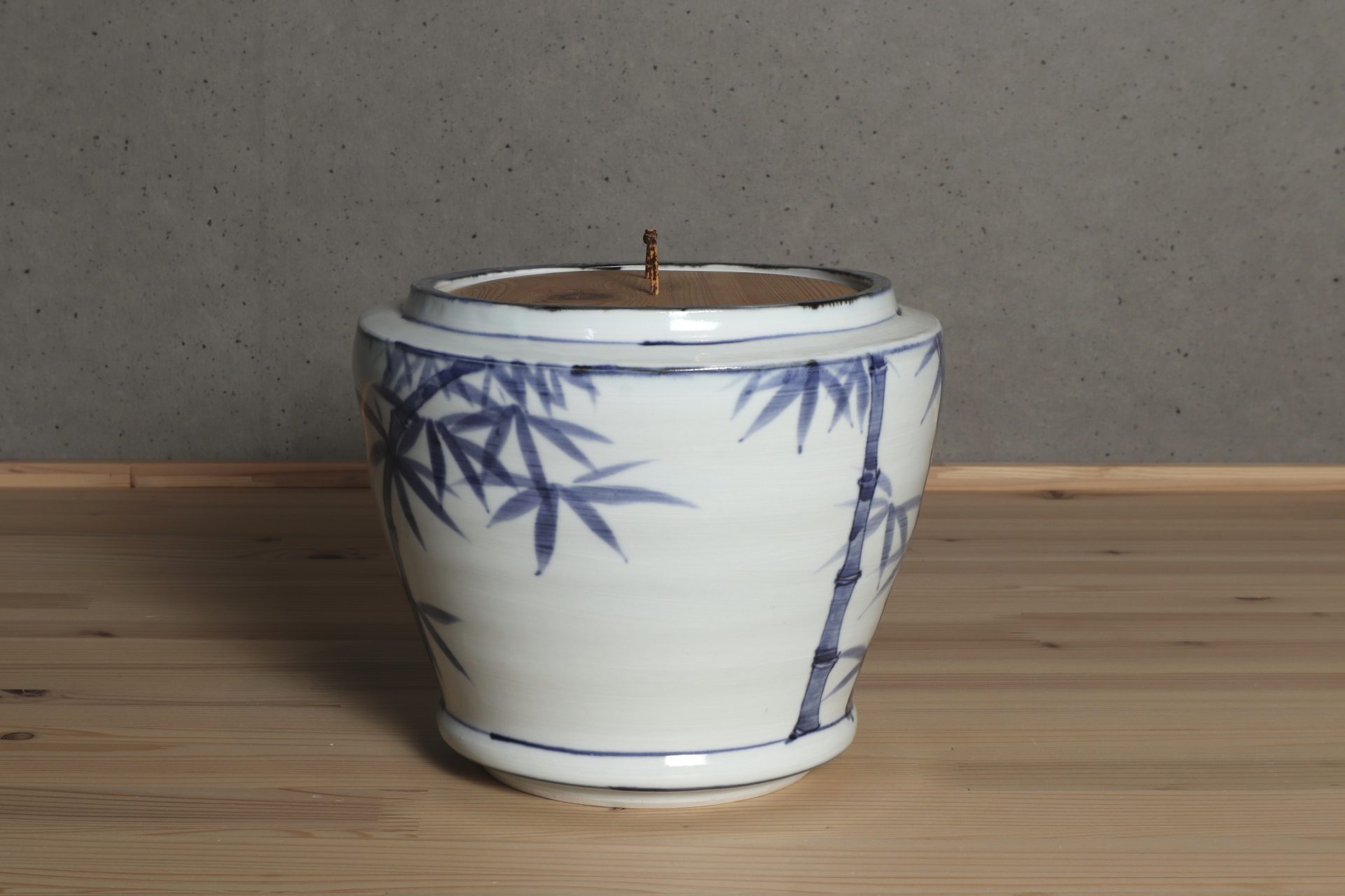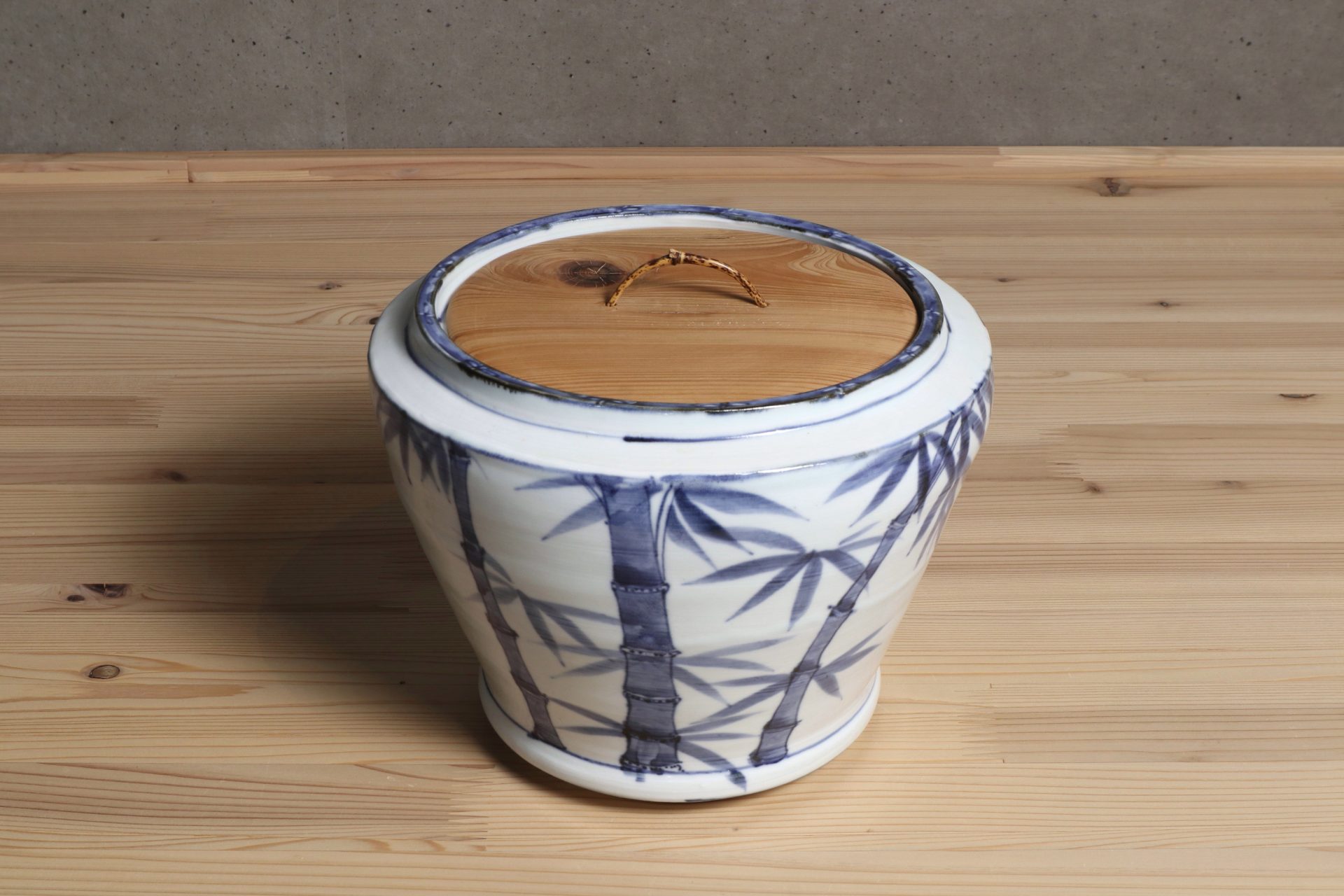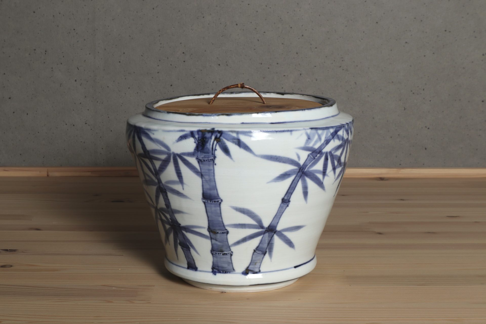 | 商品名 | 染付竹紋水指(共箱) / SOMETSUKE BAMBOO PATTERN MIZUSASHI (BOX) |