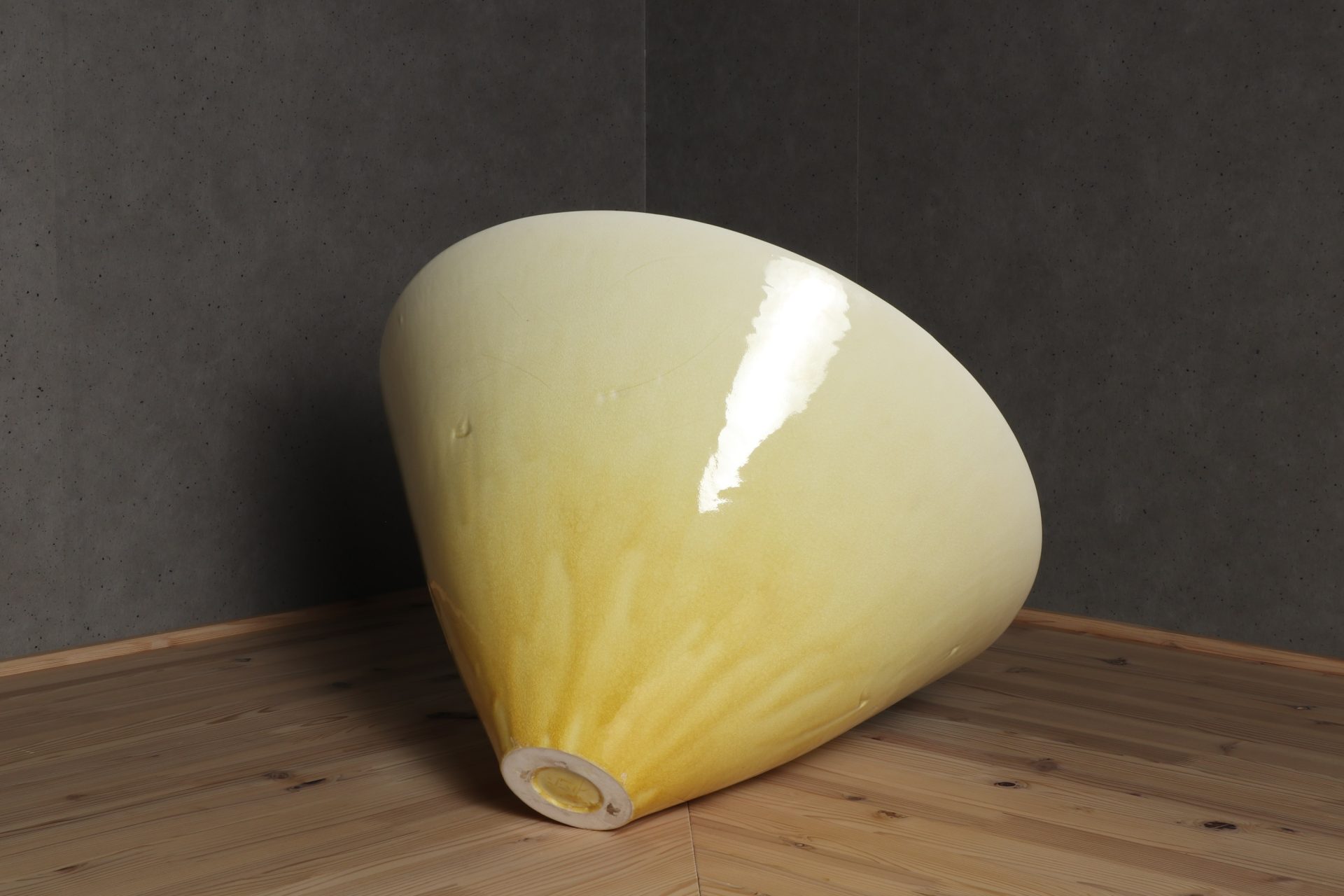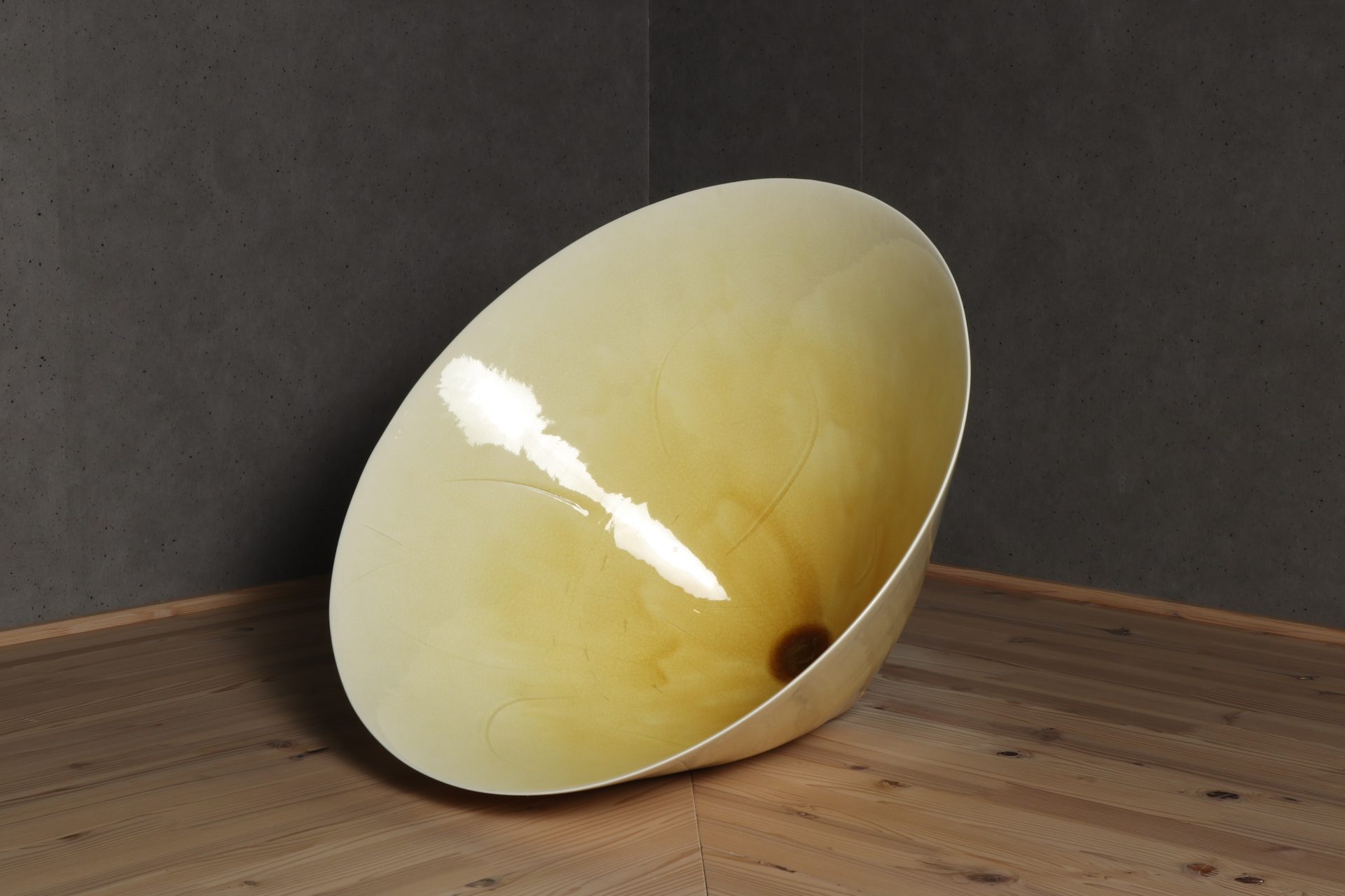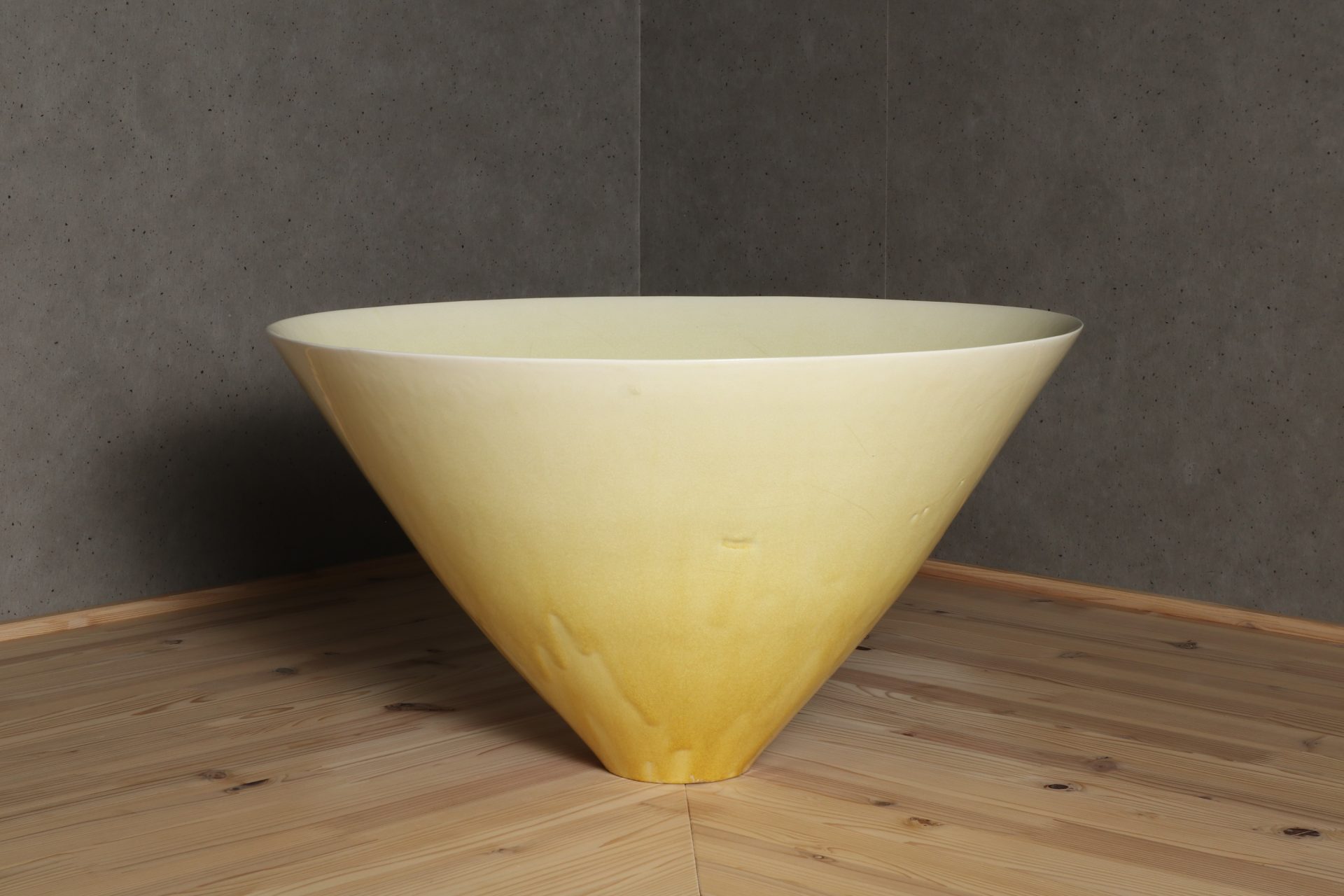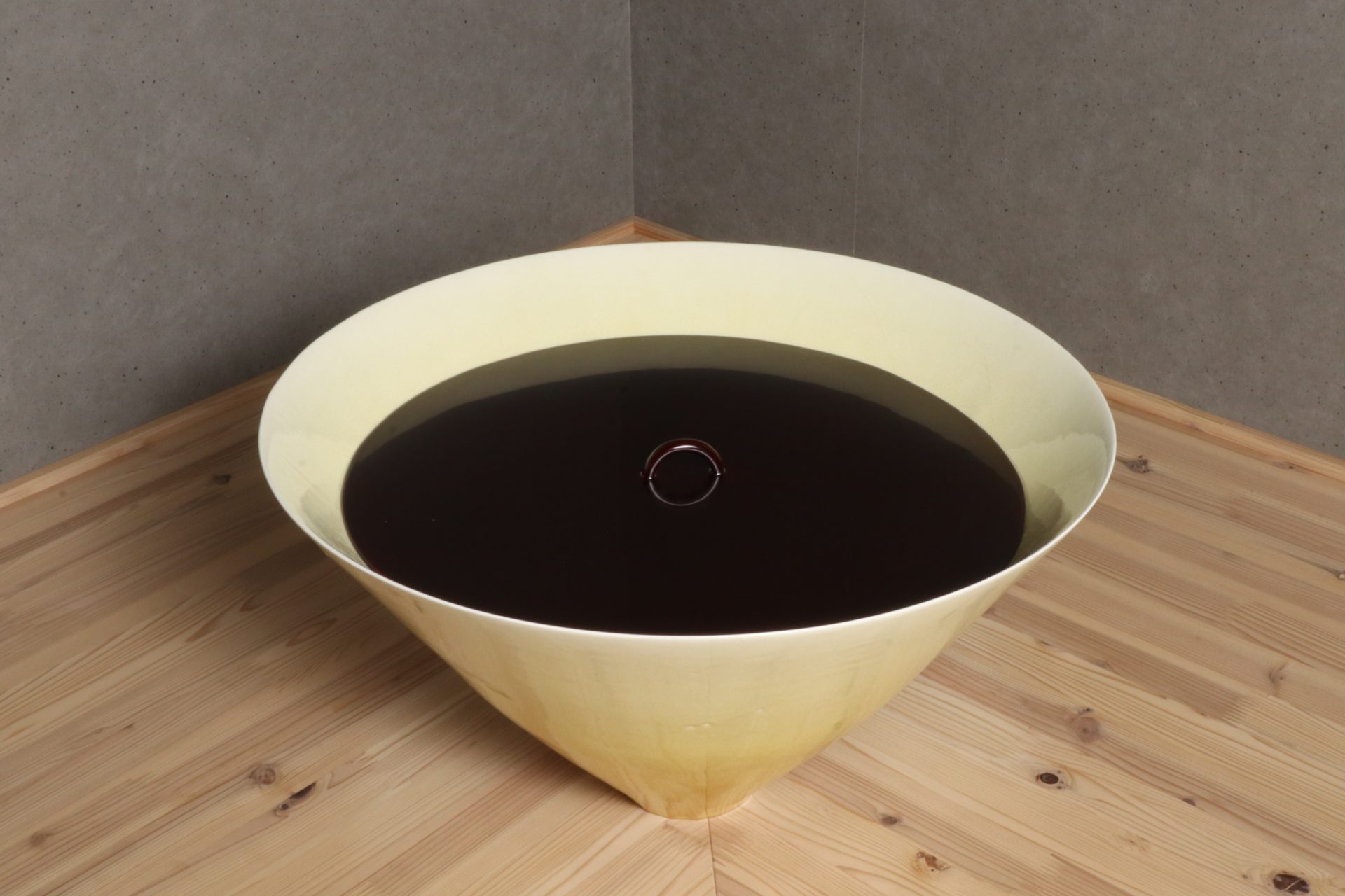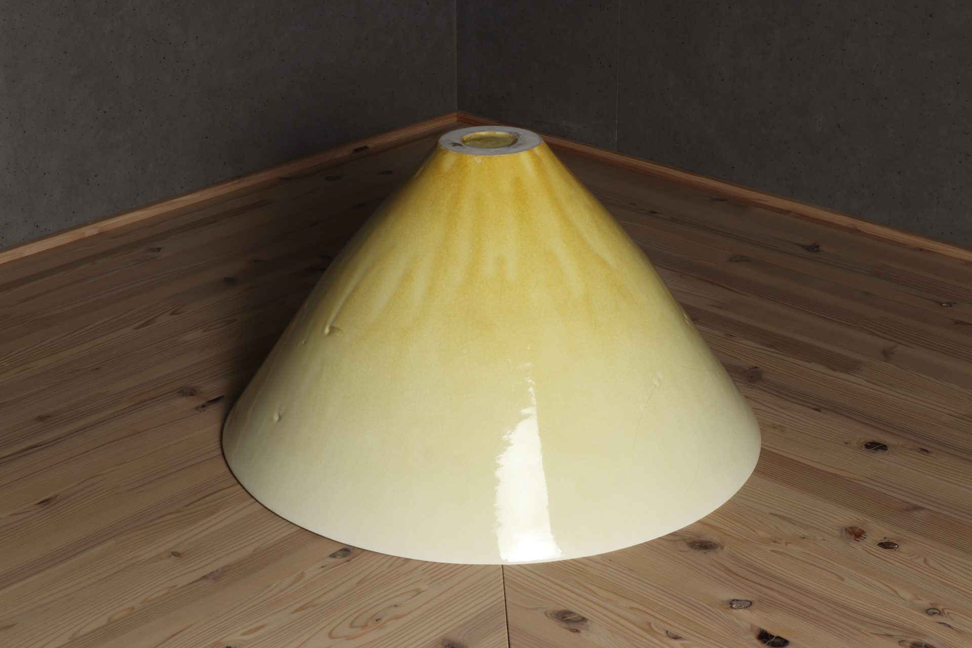 村田眞人さんの黄釉花紋大鉢で溜塗りの蓋が添えられています。透明感のある美しい黄釉の表情に、器全体が一つの花の様な、軽やかに刻まれた花紋の意匠。第58回日本伝統工芸展の入選作品。特別価格でのご紹介です。