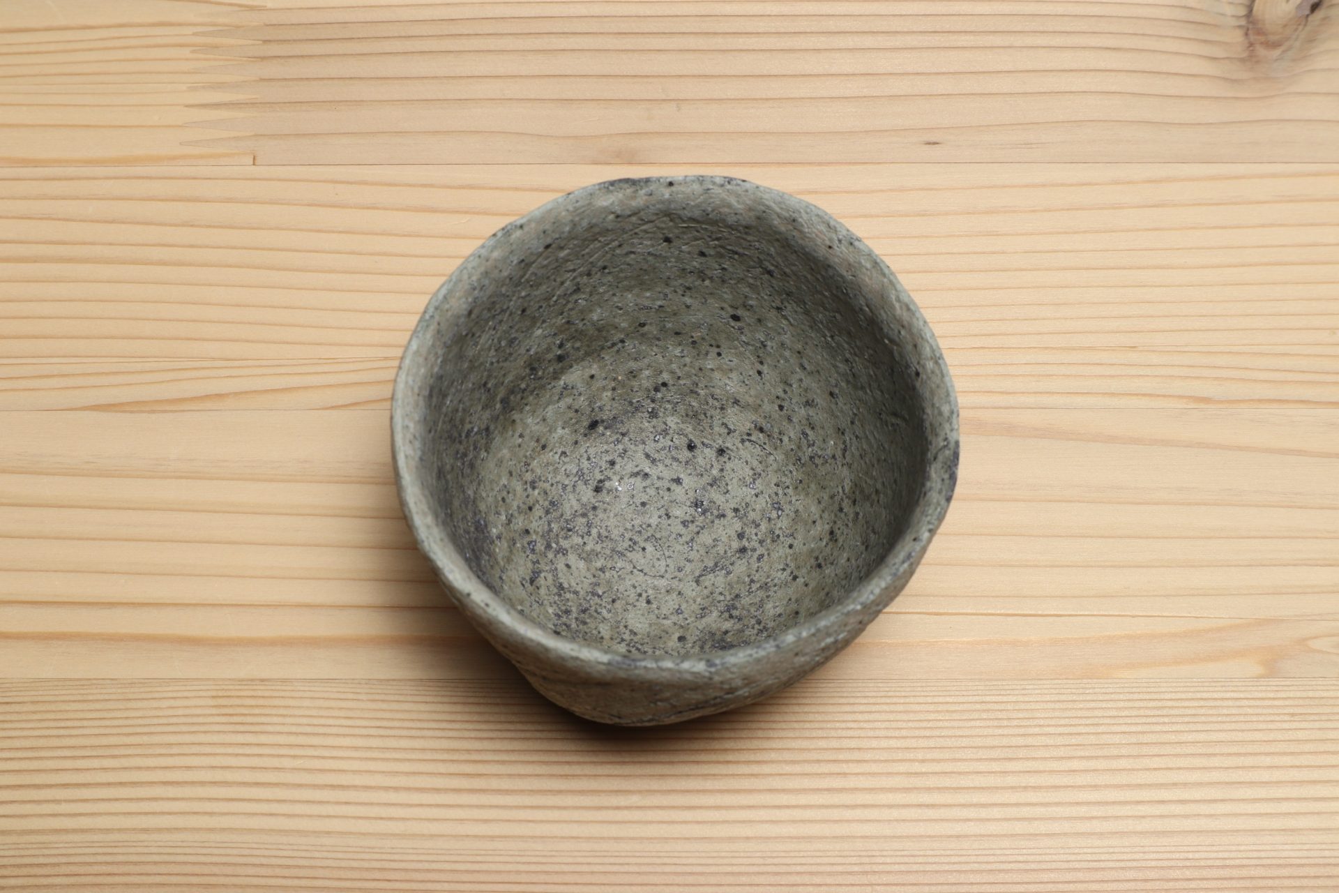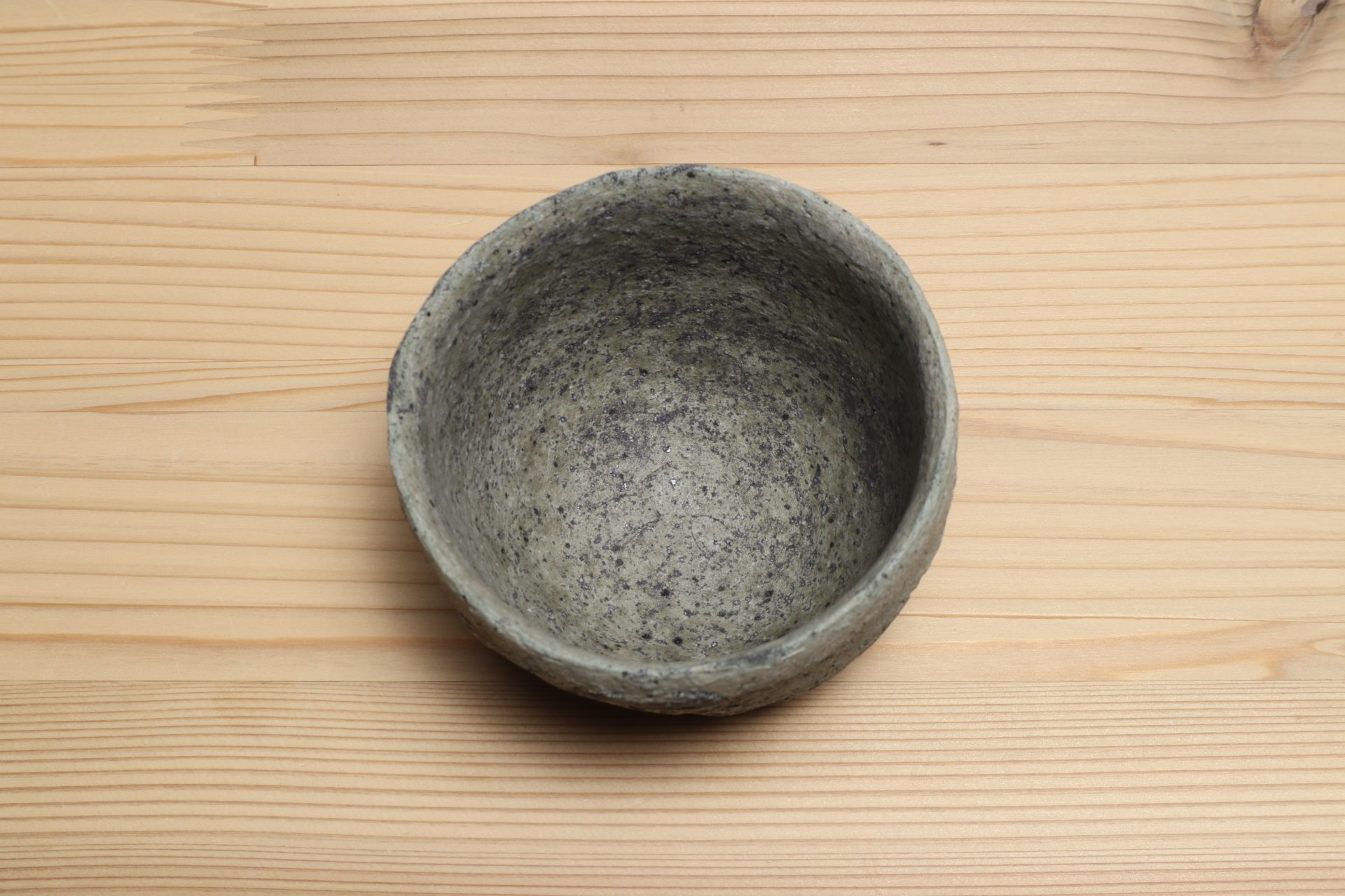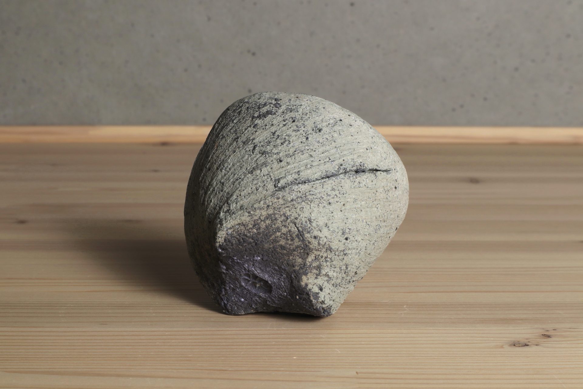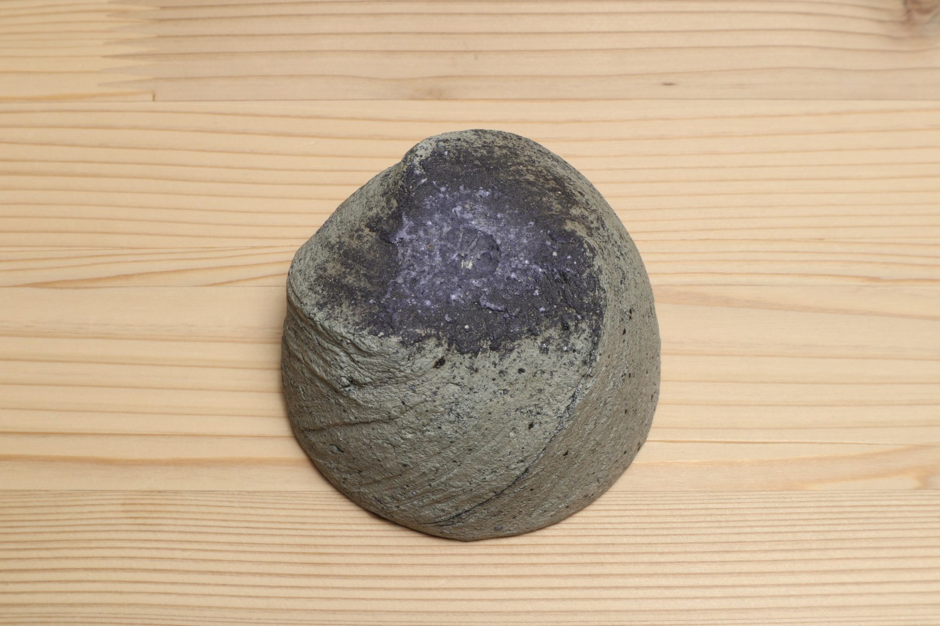 三原研さんの炻器盃です。神々が集うと言われる地元・出雲の風土に思いを馳せ、須恵器や土器のようなプリミティブな質感で表現する「炻器」。シンプルだからこそ、高い造形感覚と手間を厭わない技術の積み重ねによって生まれる作品となっています。大地をそのまま切り出したような、素朴で枯せた土の質感。炎の作用によるしっとりとした青や赤の色彩、遊び心ある高台など、プリミティブな佇まいが魅惑的な酒盃です。