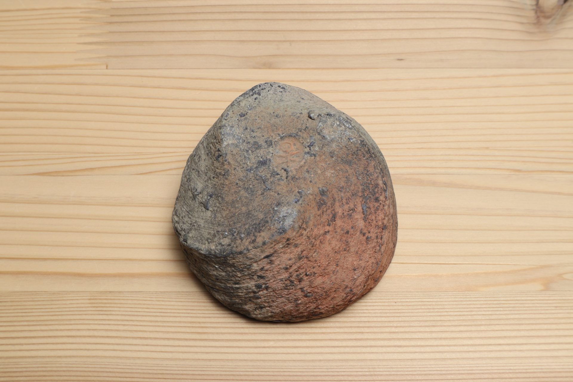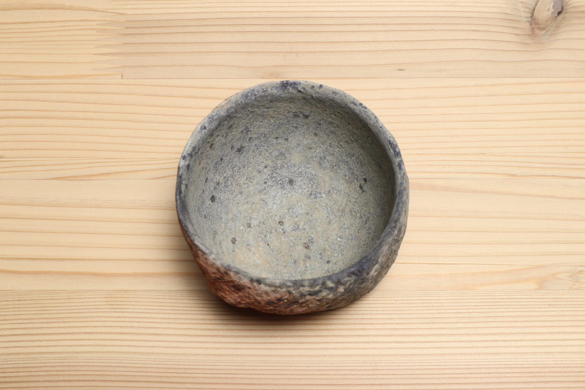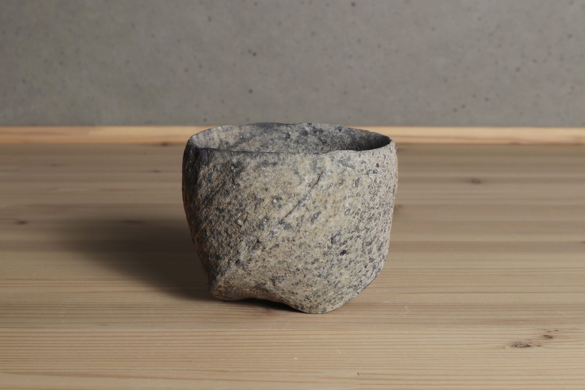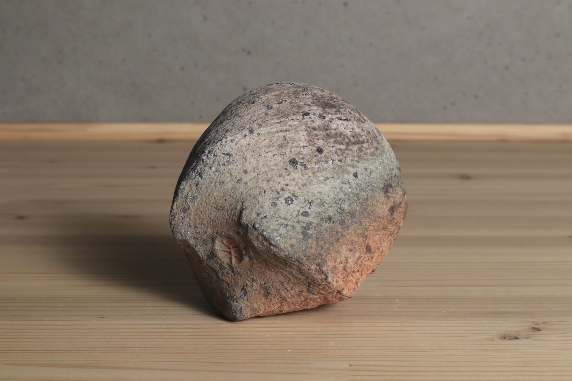 三原研さんの炻器盃です。神々が集うと言われる地元・出雲の風土に思いを馳せ、須恵器や土器のようなプリミティブな質感で表現する「炻器」。シンプルだからこそ、高い造形感覚と手間を厭わない技術の積み重ねによって生まれる作品となっています。大地をそのまま切り出したような、素朴で枯せた土の質感。炎の作用によるしっとりとした青や赤の色彩、遊び心ある高台など、プリミティブな佇まいが魅惑的な酒盃です。