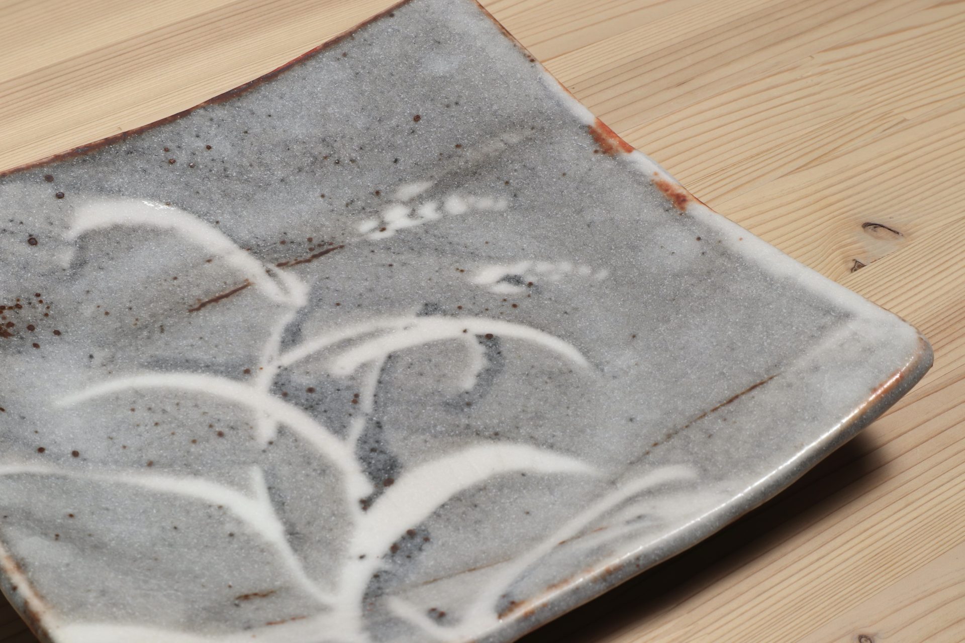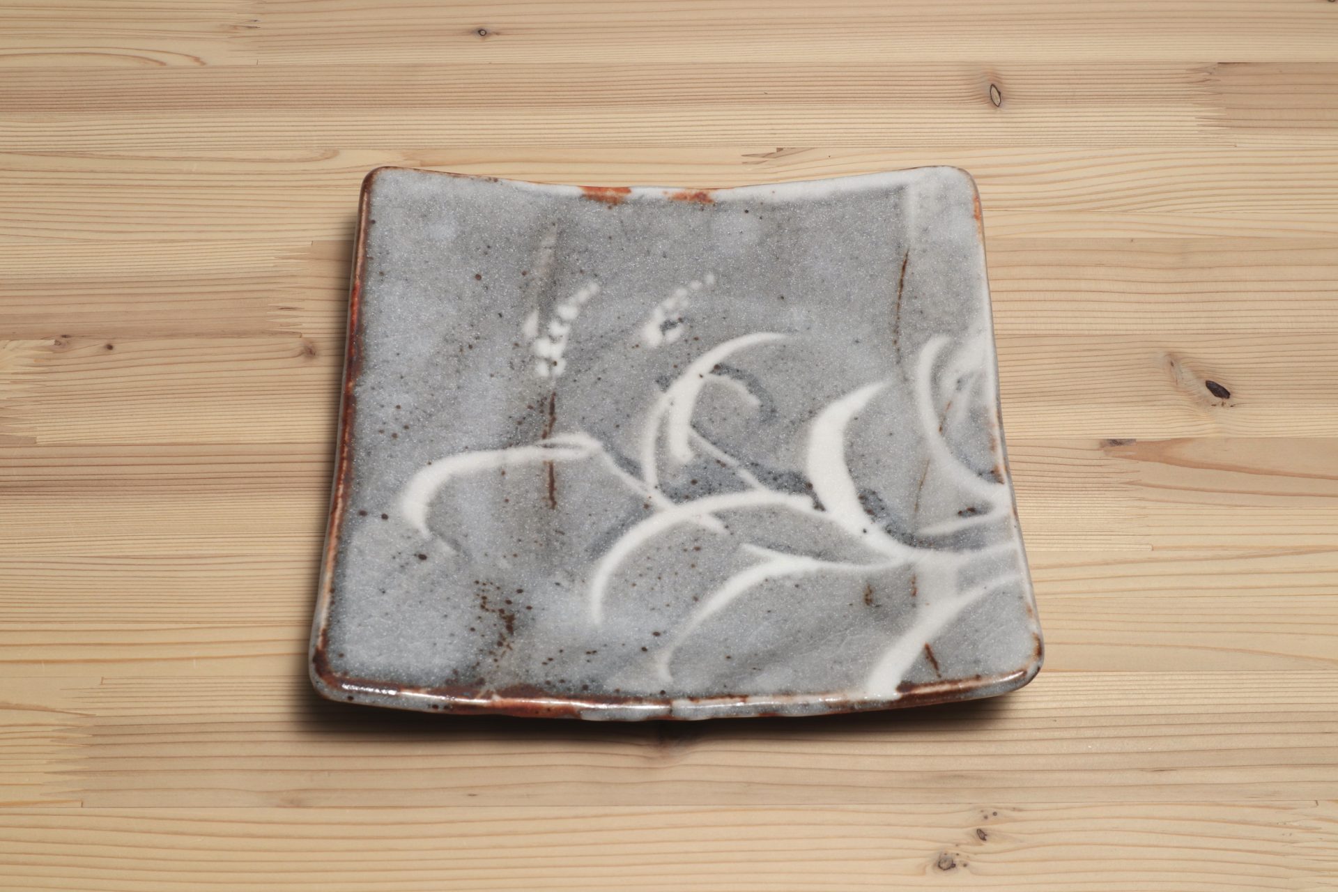 小栗正男さんの鼠志野四方皿です。