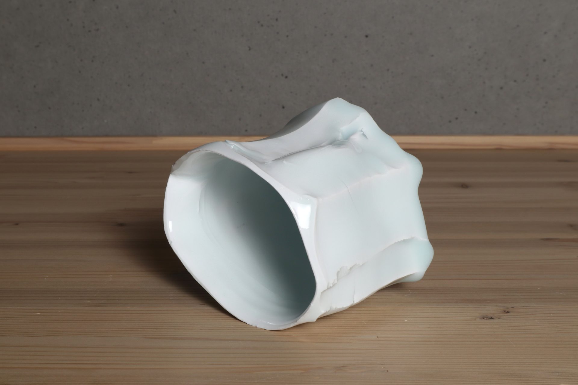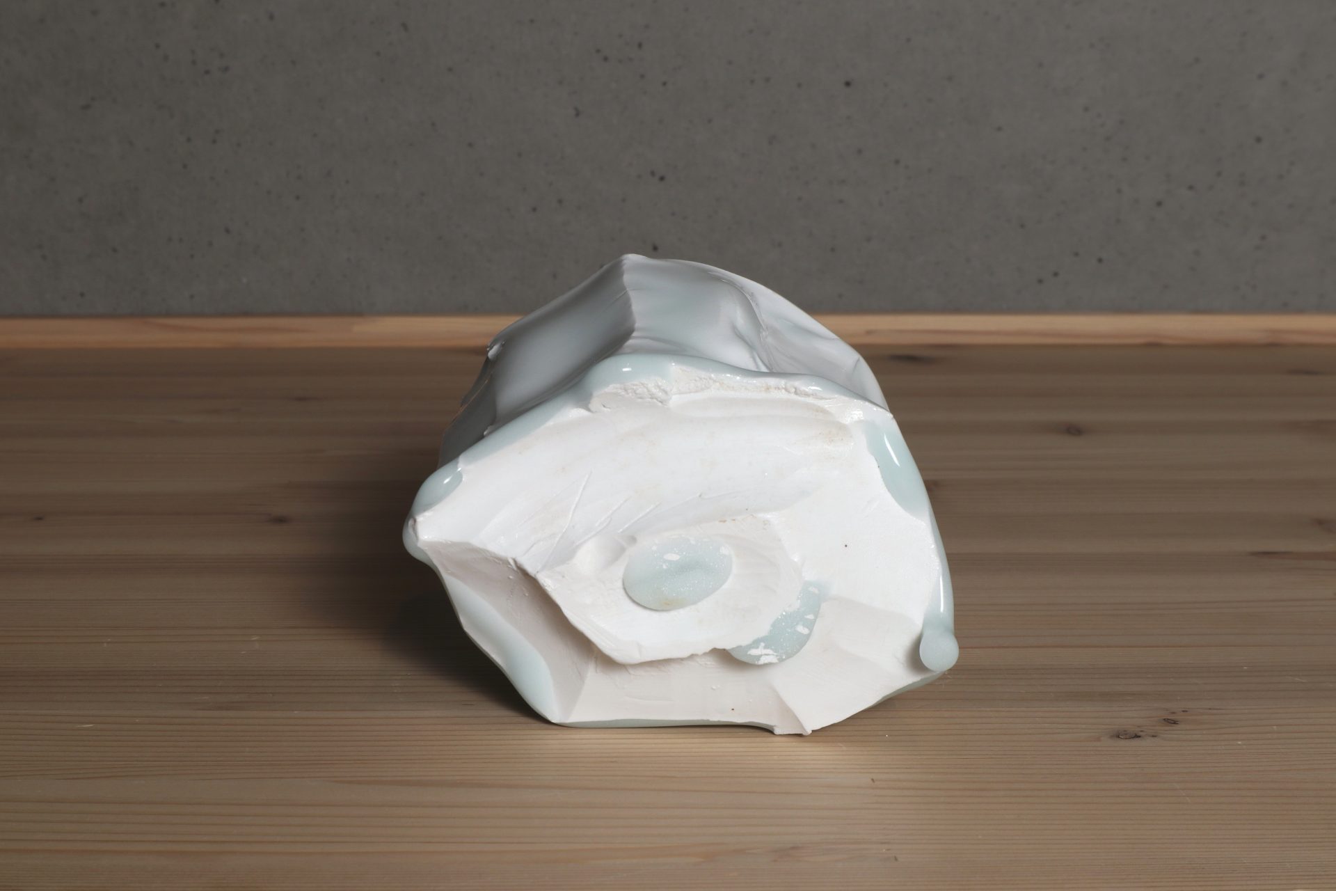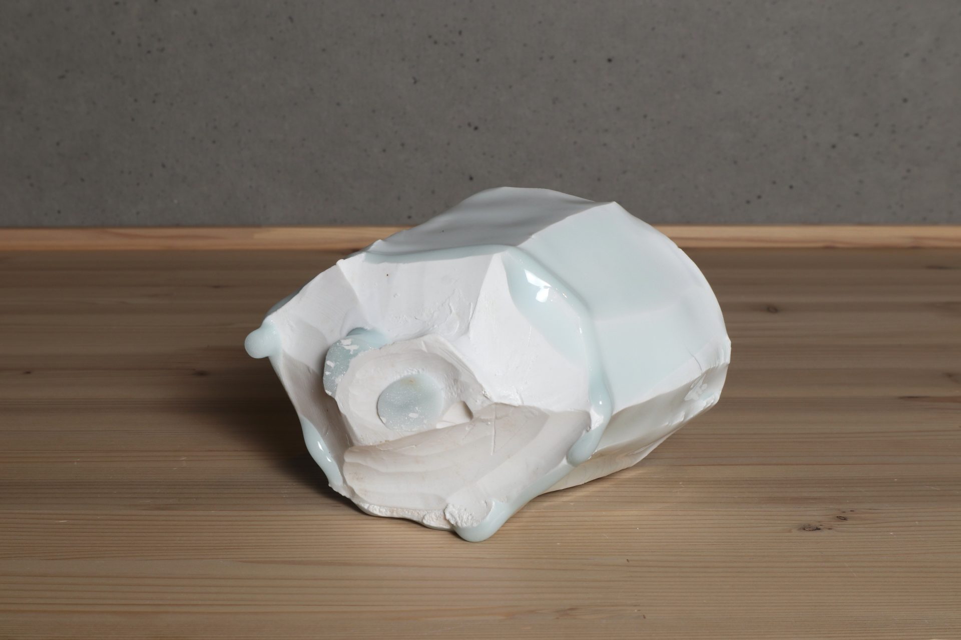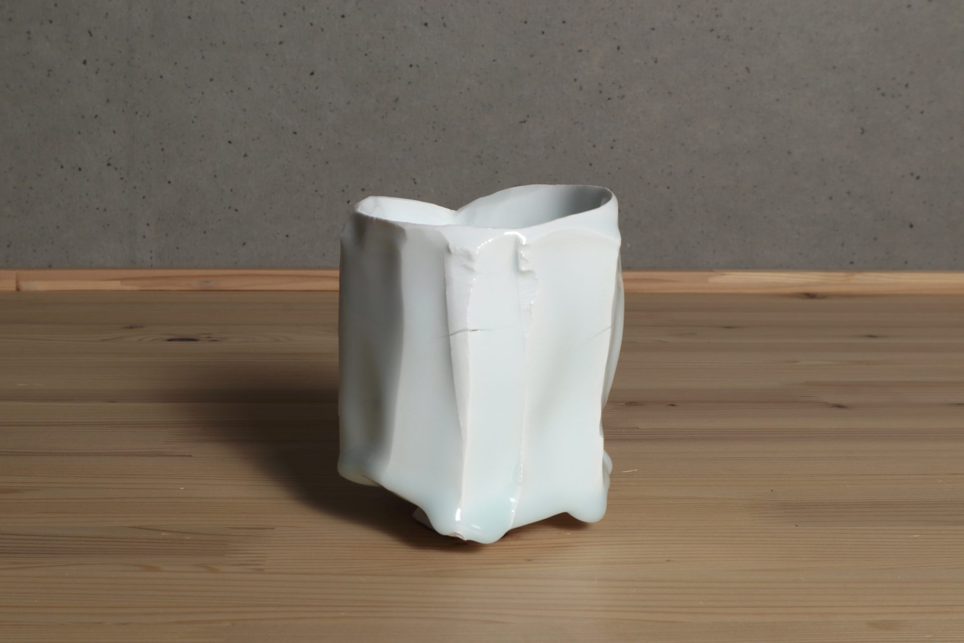 加藤委さんの青白磁面取茶碗です。厚手に轆轤成形したものを、豪胆に、そして繊細に刃物で削ぎ落した筒型のフォルム。シャープで緊張感ある面取りと、柔らかく有機的な稜線が心地良い風韻です。ニュージーランド産カオリンの磁土をキャンバスに、透き通るような美しい青白磁の色調。雫のような玉垂れ、六角に削ぎ落されたロックな高台も魅力です。